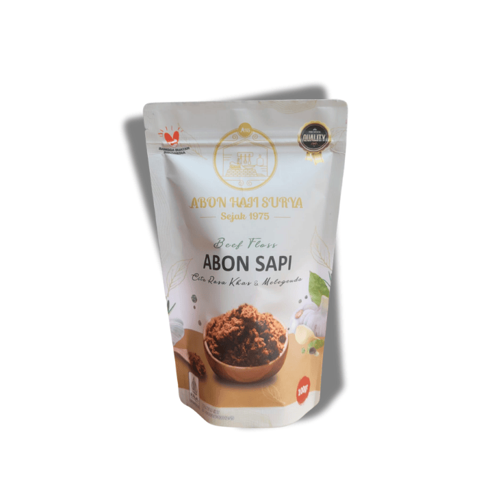 Abon Haji Surya is a family business established since 1940, engaged in the sale of fresh and processed beef. Since 1975, we produce shredded beef, jerky, and lung chips from selected local meats, traditionally cooked on firewood without preservatives. Carrying the authentic taste of the archipelago and hereditary culinary heritage, our products come as a practical and premium side dish solution, suitable for personal consumption and culinary partnerships.
