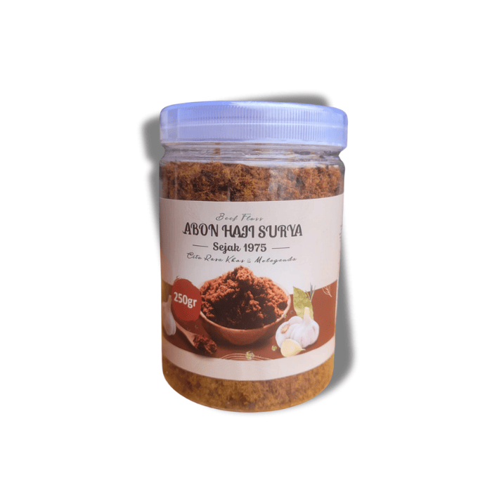 Abon Haji Surya is a family business established since 1940, engaged in the sale of fresh and processed beef. Since 1975, we produce shredded beef, jerky, and lung chips from selected local meats, traditionally cooked on firewood without preservatives. Carrying the authentic taste of the archipelago and hereditary culinary heritage, our products come as a practical and premium side dish solution, suitable for personal consumption and culinary partnerships.
