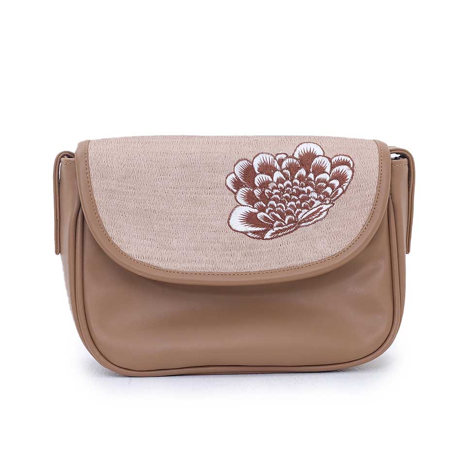 Made from ikat woven material, premium faux leather, cotton inner, black nickel accessories, zipper.