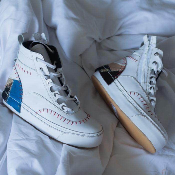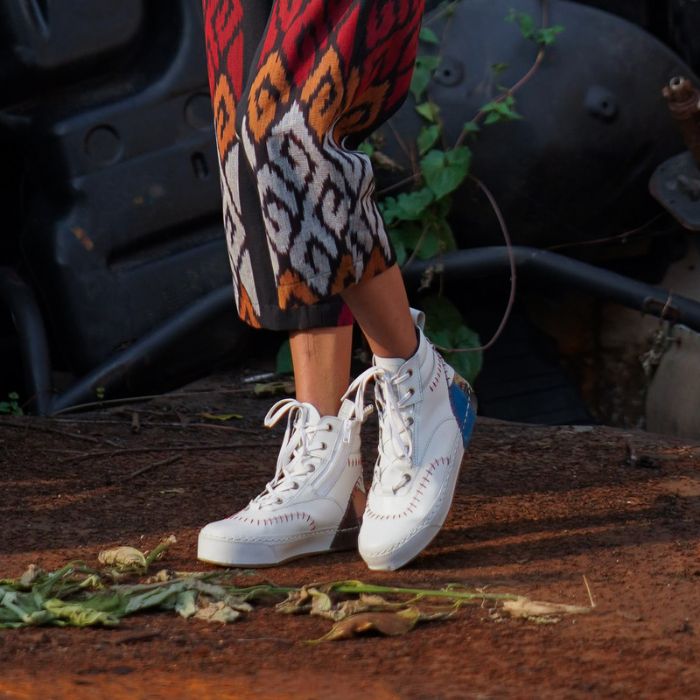 This first variant of Akar sneakers is designed in a casual style but does not leave the impression of "boots". The main material used for these sneakers is Crazy Horse or Pull Up cow leather. The uniqueness of these sneakers, there is a patch on the back, which comes from the remnants of production materials such as leather, fabric, and weaving combined into interesting details.