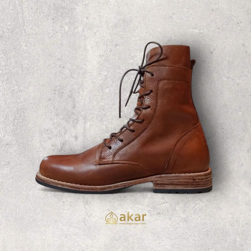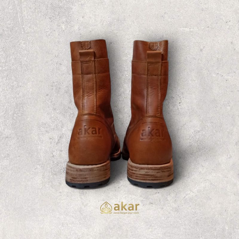 The stacked vegetable-tanned leather sole and solid Veldtschoen construction make Kakara Boots a reliable companion for every step—literally and symbolically. Each pair is carefully handmade in the Akar NFYR workshop, a true tribute to roots and tradition.