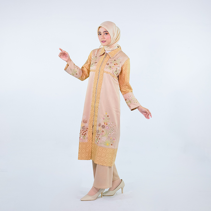 Alumazra was established in 2017 in Tasikmalaya, inspired by the growing public interest in fashion trends. Alumazra aims to present distinctive and contemporary Muslim fashion. The brand emphasizes excellence in design, manually crafted embroidery details, and product quality—adding strong value to each piece. Its uniqueness lies in original motifs, high-quality handmade craftsmanship, and powerful visual marketing through social media and e-commerce. Alumazra not only highlights aesthetic and religious values but also plays a role in preserving local culture, empowering women artisans, and expanding the reach of Tasikmalaya's Muslim fashion to national and global markets.