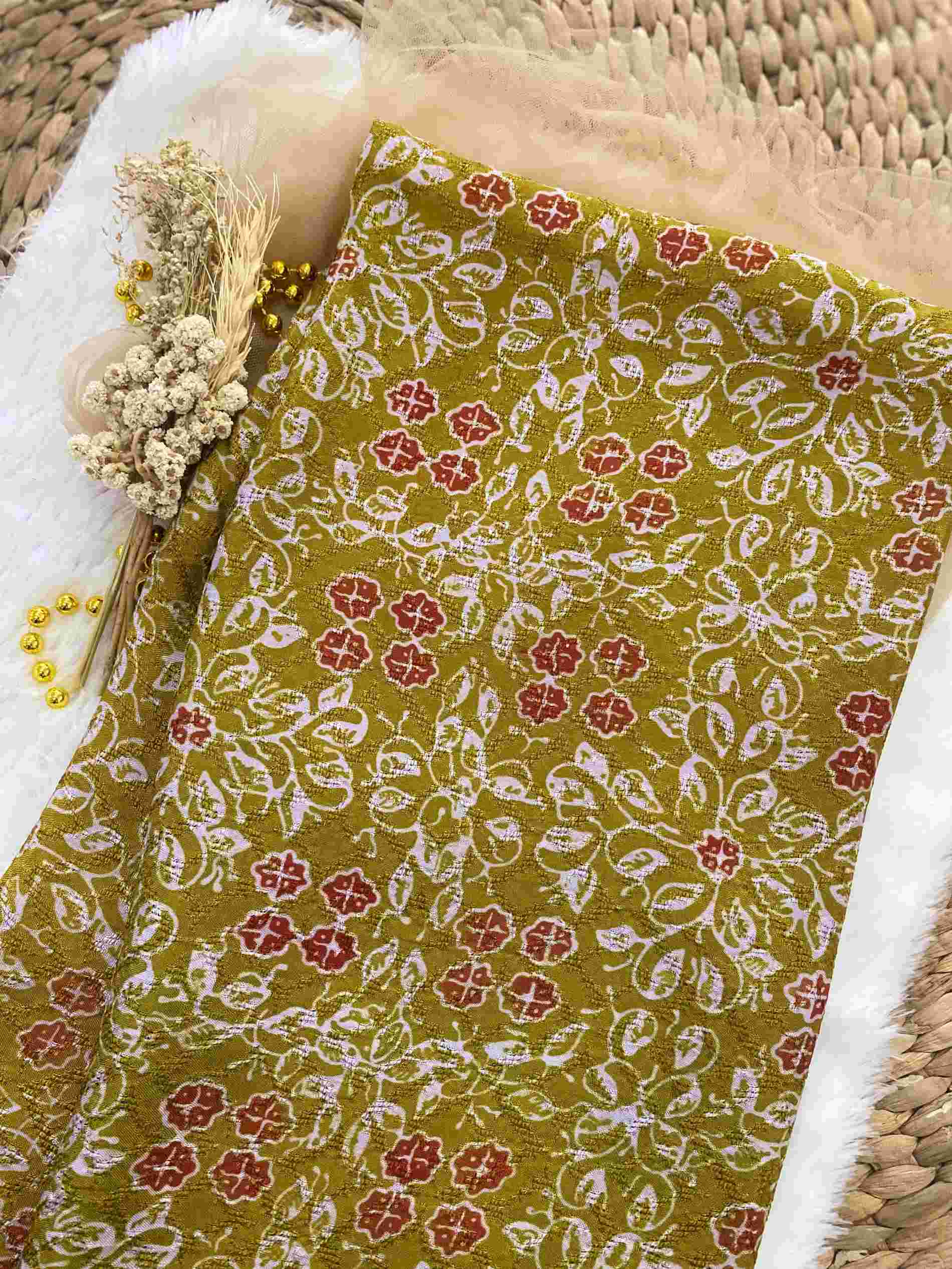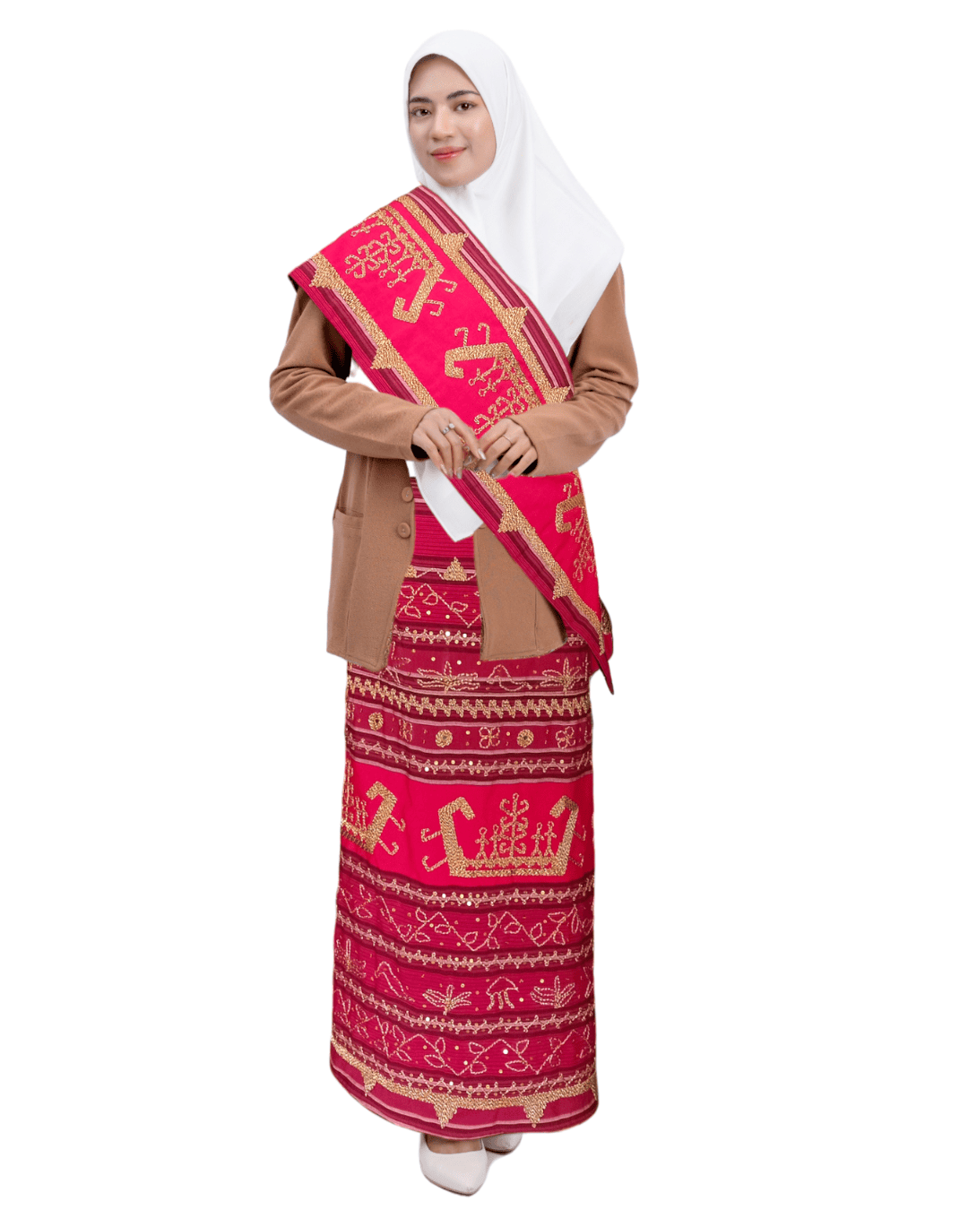 Pattern Meaning: Sulaman tapis, yang biasanya digunakan pada pakaian adat atau dekorasi rumah, melambangkan kesenian yang rapi, terperinci, dan penuh makna. Setiap sulaman menggambarkan kearifan lokal, keindahan alam, dan filosofi hidup masyarakat yang menjunjung tinggi nilai keharmonisan dan keselarasan