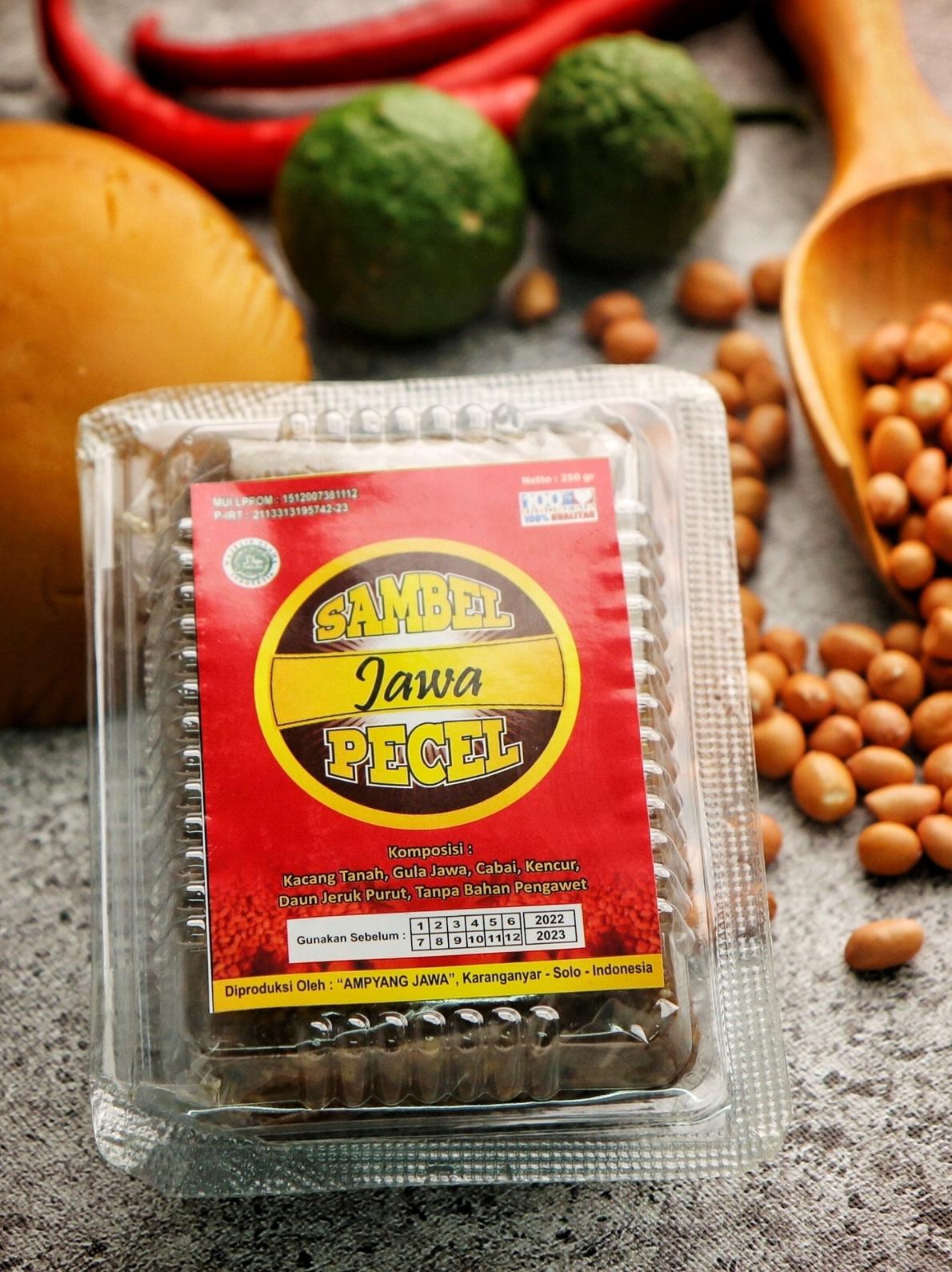 Sambel Pecel Cap Jawa is a traditional chili sauce variety, handcrafted by skilled artisans without the use of machines. It is dry-roasted without oil and comes in several flavor variants: extra spicy, spicy, medium, and non-spicy (without chili).