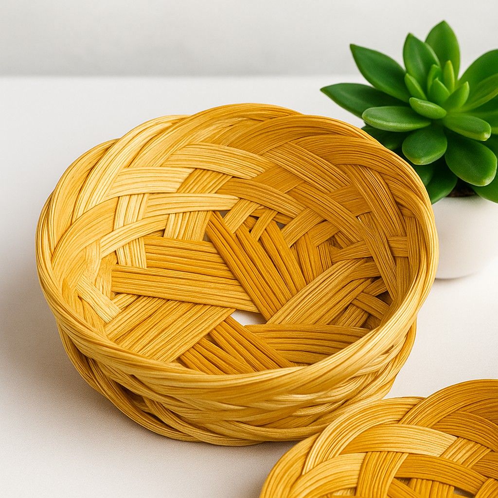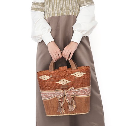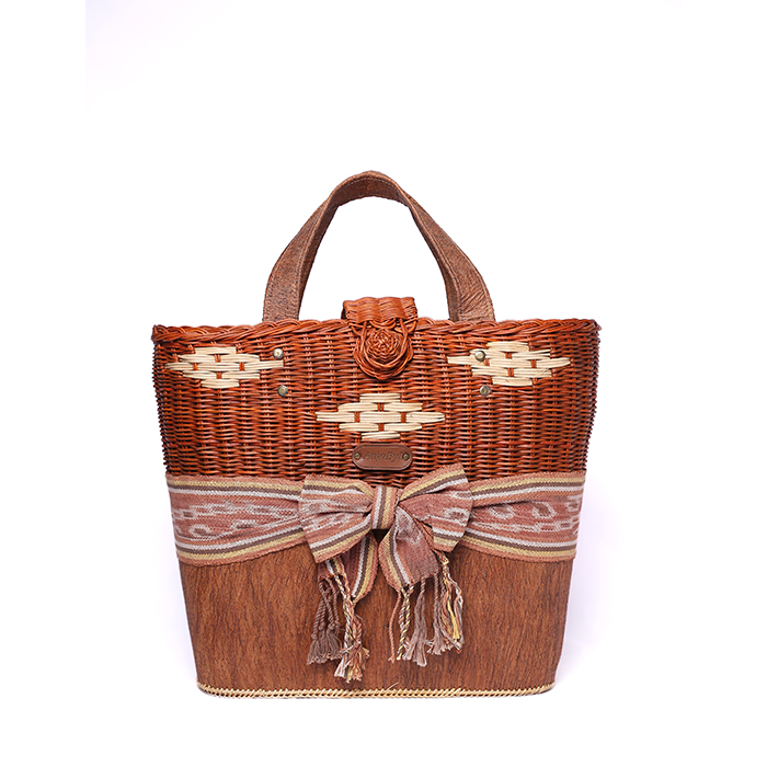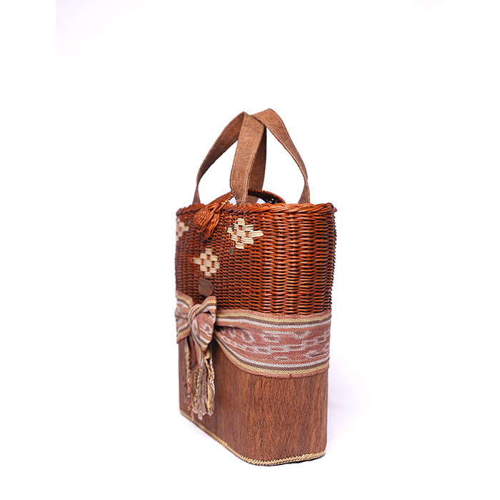 combined with woven water taro roots and decorated with dayak ikat weaving with natural dyes.