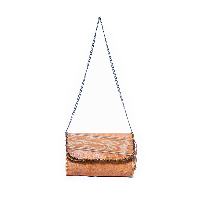 Material Type: Serat Kulit Kayu Kapuak di Kombinasikan Dengan Tenun Dayak Ikat Pewarna Alam Iner Tas Kain Suede.