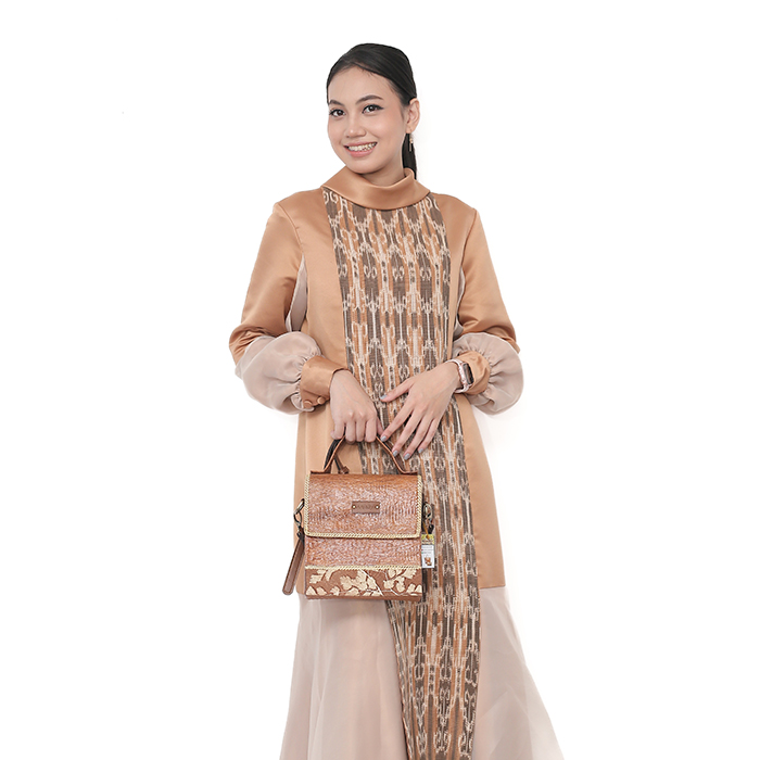 Made from kapuak bark fiber which is a typical Kalimantan local wisdom combined with ecoprin fabric whose motifs are produced from fresh leaves.