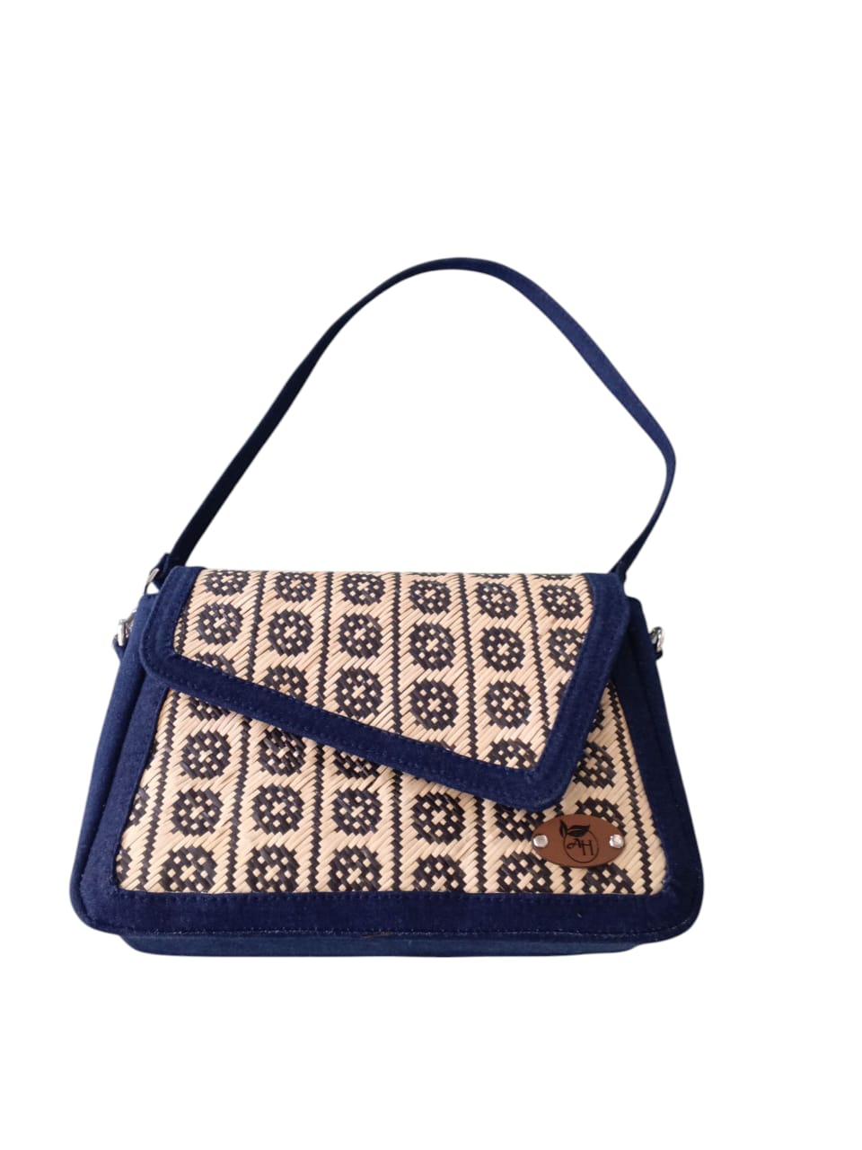 Meranti Bag comes with a unique design that gives a slightly slanted shape to the front of the bag, the bag is combined with rattan and rope which is available with a short rope size as a handbag and a long rope as a sling bag, there are three spaces for storage, the main space and two other small spaces that you can use for storage.