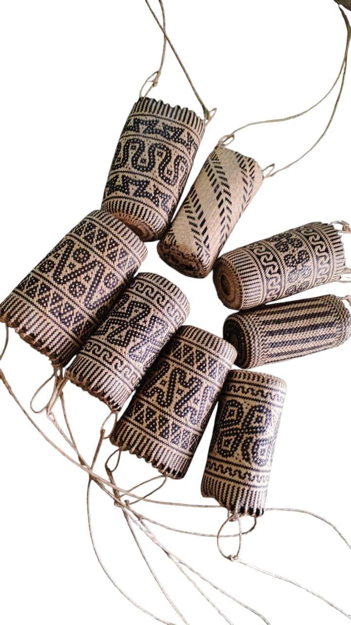 Anjat Sling Bag Etnik is a tube-shaped bag with a variety of typical Central Kalimantan motifs and original rattan color variants, this bag is original without additional lining or inner zipper, the size follows the motif, there is about 2-3 cm tolerance for size differences between each product.