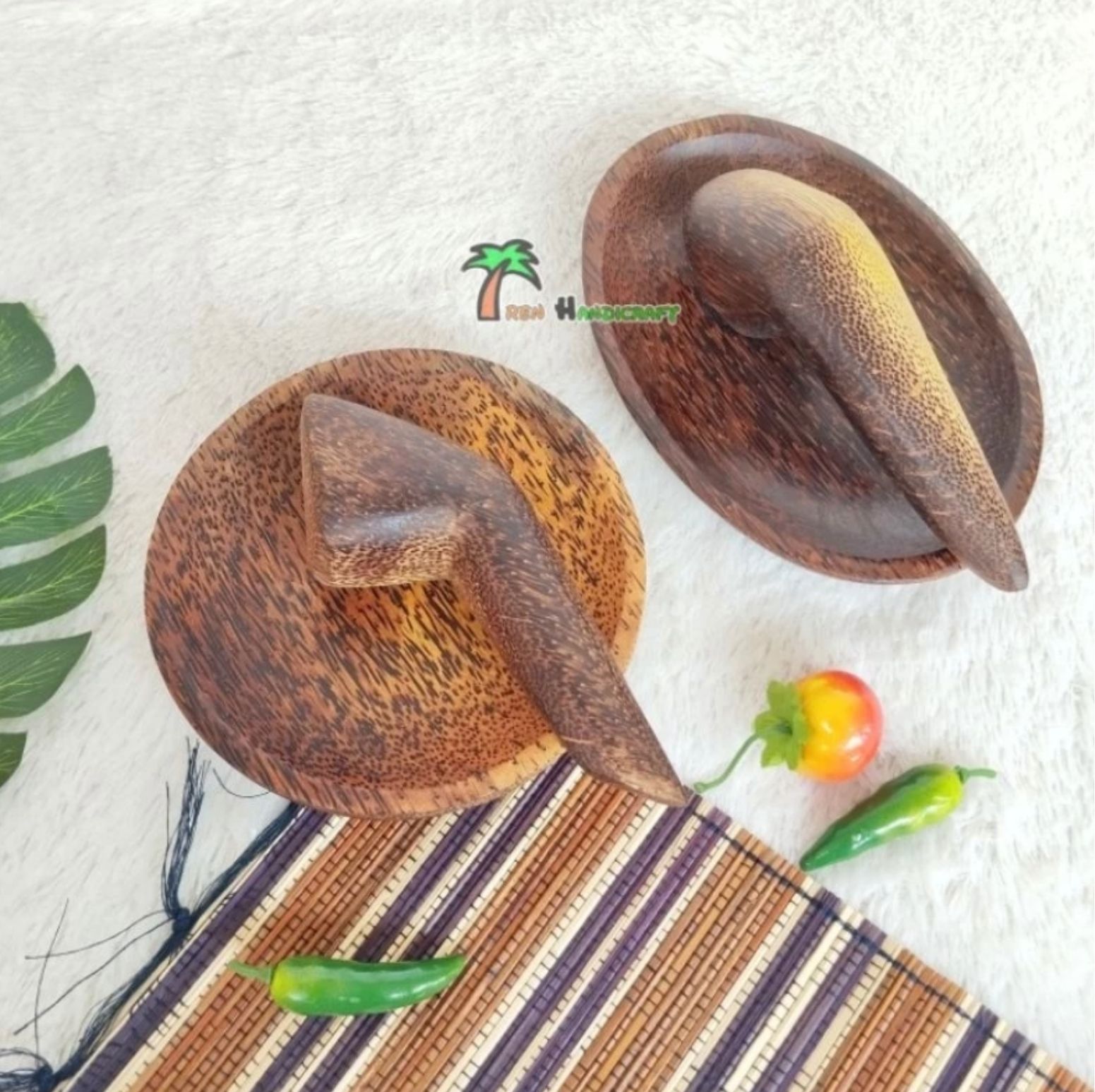 Aren Handicraft is a wooden craft shop that provides household equipment and kitchen equipment that are all made of wood. The raw materials used include aren wood, mahogany wood, and teak wood. The products produced are mortars, trays, plates, rice spoons, etc. In addition, we also provide several products for souvenirs, hampers and several products for photo props.