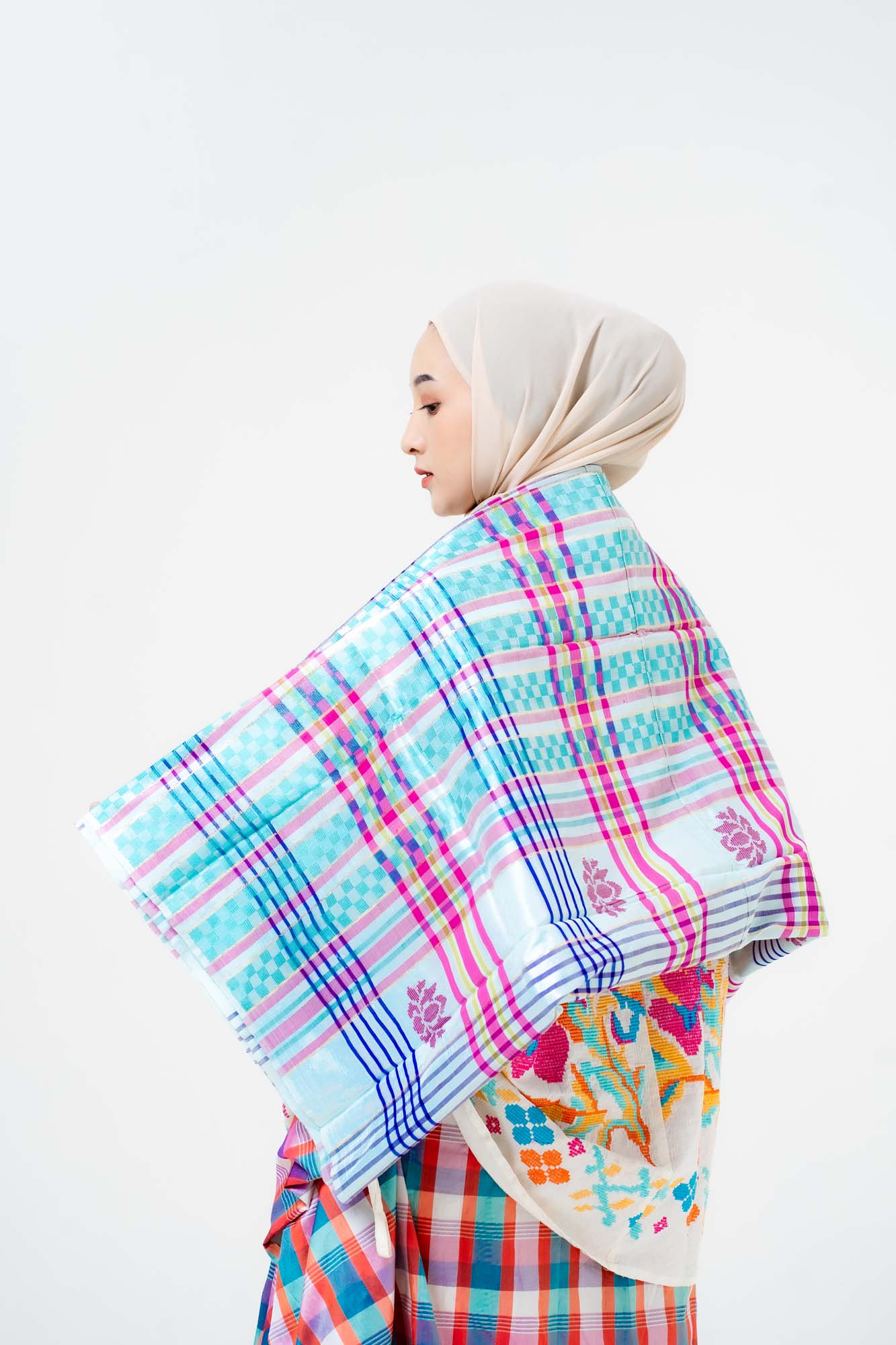 SARUNG SUTERA PADUAN MOTIF LOBANG DAN TERATAI (TANPA TUMPAL)