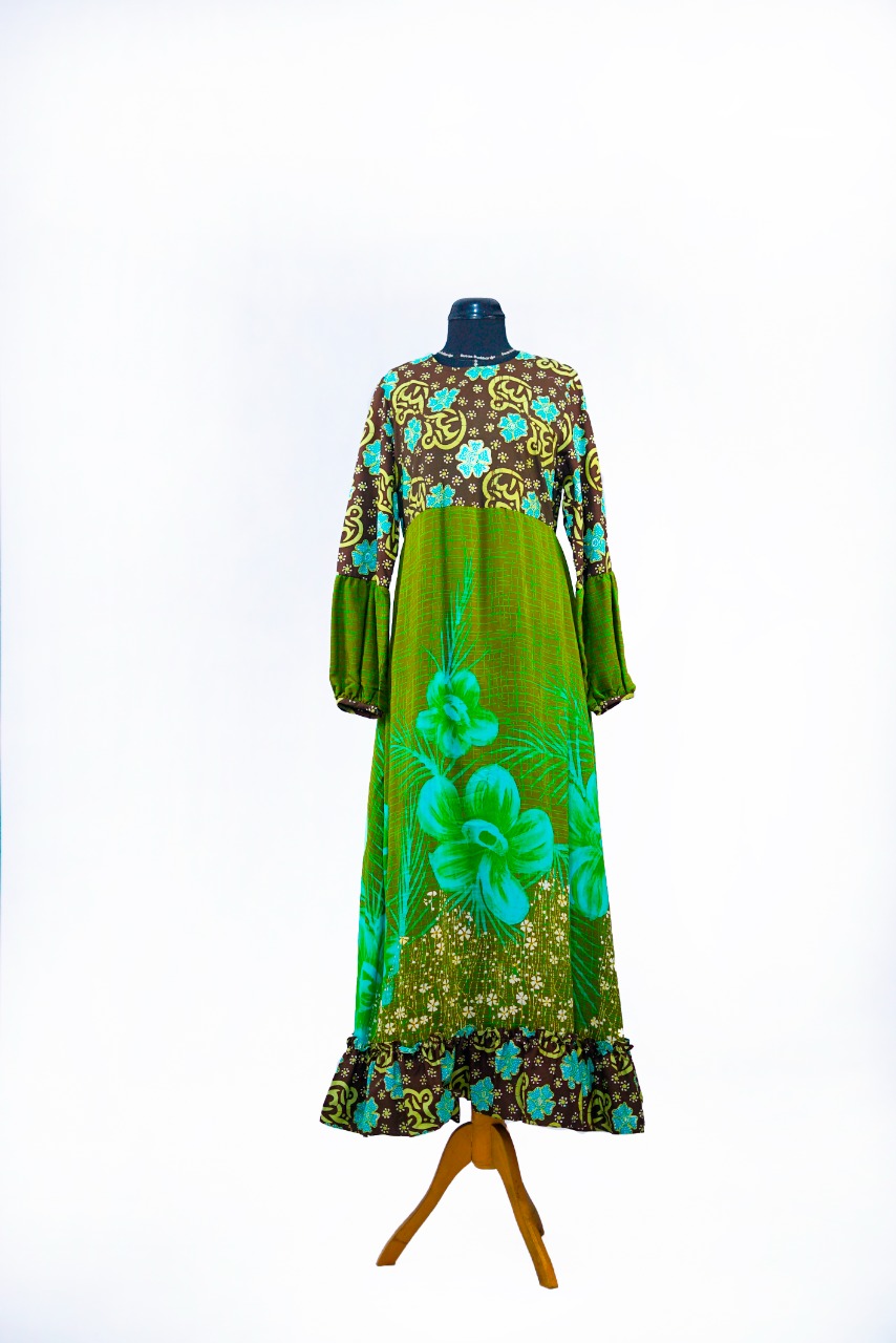 Baju Gamis Motif Batik Besurek dan Bunga Rafflesia