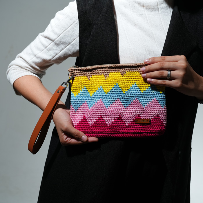 A colorful crochet wallet with eye-catching tribal patterns — vibrant, charming, and perfect for a modern ethnic style!