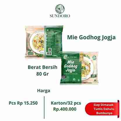 CV Sundoro Indonesia is engaged in food manufacture. The first and only packaged Jogja noodles in Indonesia. Typical Jogja noodles produced without preservatives, without synthetic coloring, without flavor enhancers. Equipped with BPOM, Halal MUI, SNI certification. Boiled and Fried Variants available. The pasta seasoning must be sauteed first, the authentic taste of Jogja noodles, Pioneer of Jogja noodles in the first and only packaging in Indonesia
