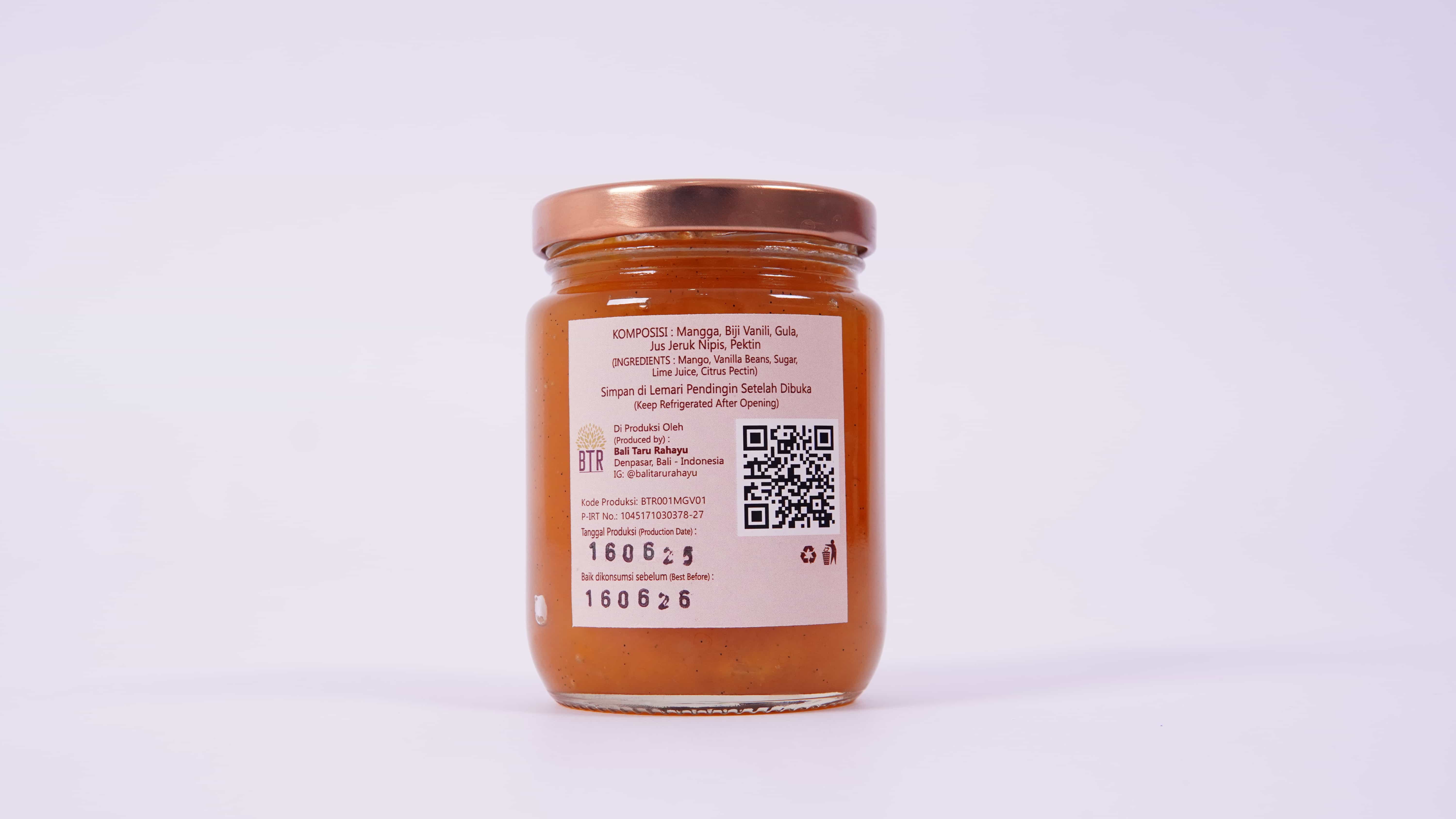 Material Content: Mango, Vanilla bean, sugar, lime juice, citrus pectin