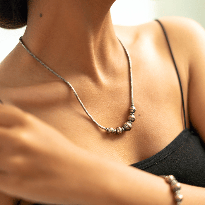 Kalung bola silver is a special handmade necklace made of 92.5 percent combined with 18 carat of gold engrave with balinese design