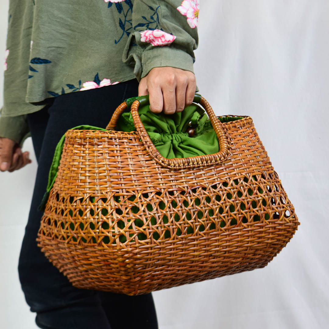 The combination of horizontal woven rattan and motoera into a single design of a large tote bag that is quite light in weight. We present JOVINKA to help the owner carry many important items.