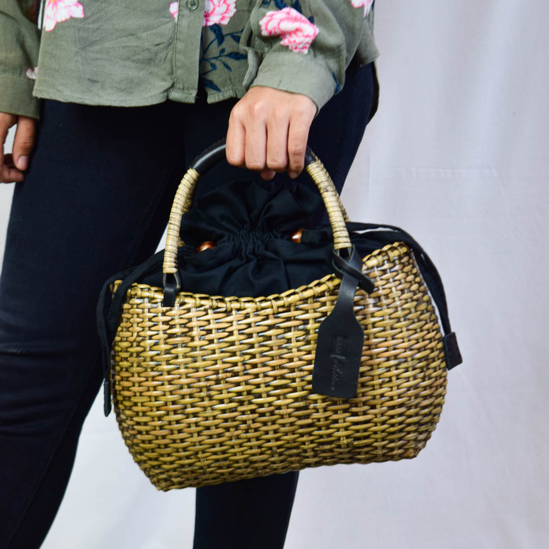 The rattan leather section makes the TABALONG SS3 an ethnic tote bag. its unique shape makes Base Artisan's authentic identity.