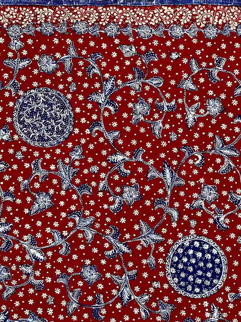 Pattern Meaning: Sekar Jagad (Bunga Bumi) merupakan motif macam macam flora khas lasem yang melambangkan hubungan yang harmonis antara munusia dan alam. Bang Biron (Merah Biru) merupakan salah satu kombinasi warna batik klasik Lasem.
