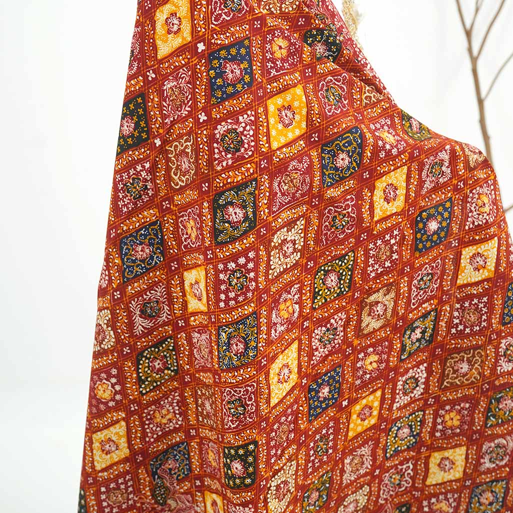 Pattern Name: Burung Merak , bunga sepatu. Latar kotak kotak isi sekar jagad