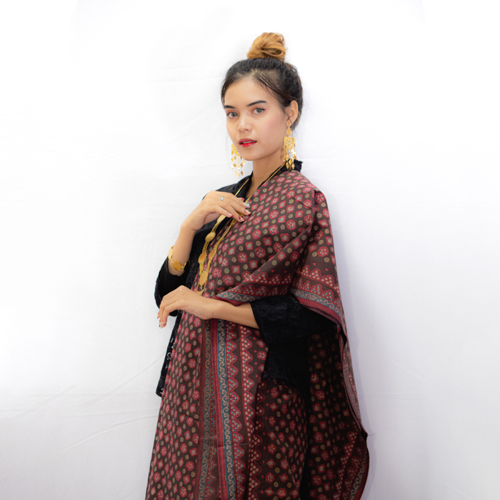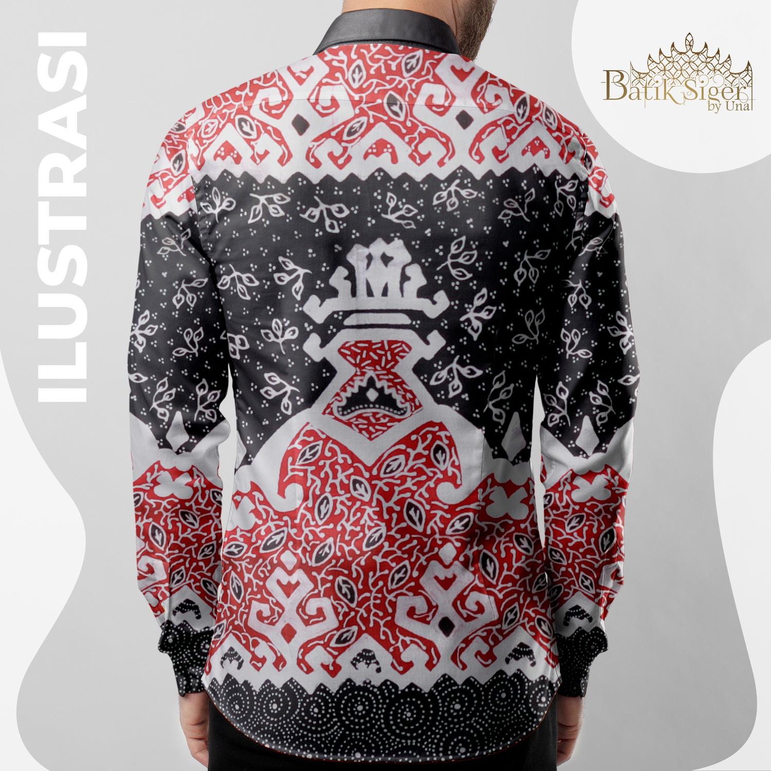 Pattern Meaning: Melambangkan kehormatan dan keluhuran tradisi yang menjulang tinggi, dihiasi dengan keindahan alam yang tak terbatas. Pola ornamen vertikal yang kokoh dan berulang menyerupai puncak bukit atau arsitektur adat, sementara detail sulur dan bintik-bintik halus merepresentasikan kekayaan serta keragaman yang ada di dalamnya.
