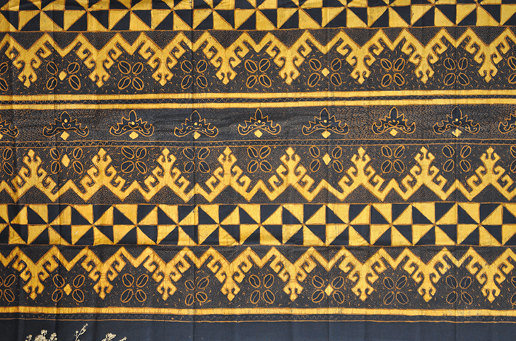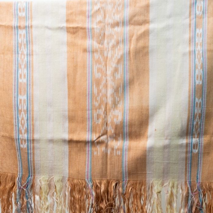 Pattern Meaning: Celugam adalah kain khas Lampung Barat yang berbentuk potongan potongan kain segitiga berwarna merah, oranye, hitam dan putih menyatu menjadi motif-motif unik dan antik.