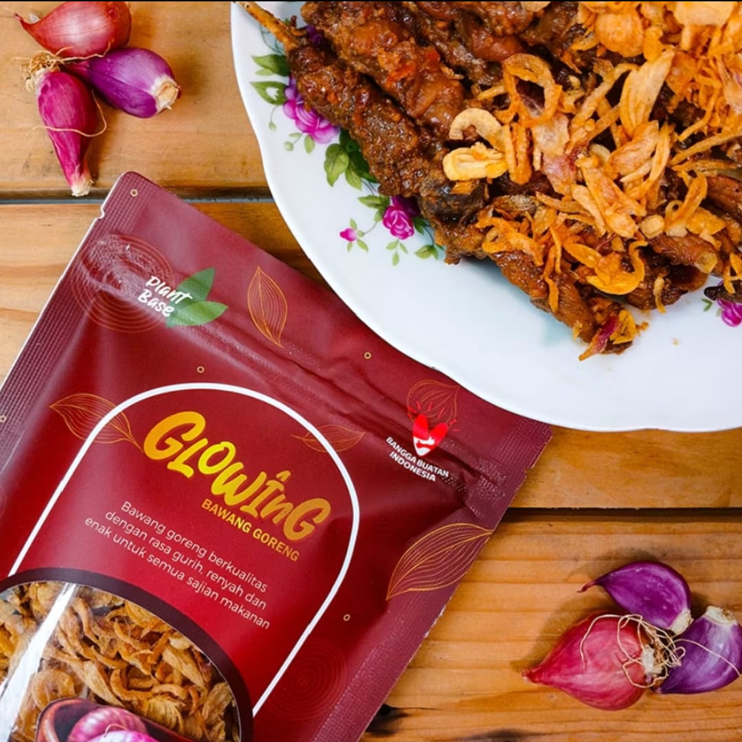 **"Glowing" fried shallots are produced by resilient women farmers who are members of the Sekar Mulya Nawungan Women Farmers Group. 100% of the shallots are cultivated using environmentally friendly practices. Thanks to its quality, the Nawungan shallot product is popularized under the name "GLOWING," an acronym in Indonesian for Gede (Big), Lebih Orisinil (More Original), and berWawasan LINGkungan (Environmentally Conscious). These "GLOWING" fried shallots successfully empower women and present a healthy, eco-friendly Indonesian seasoning."**