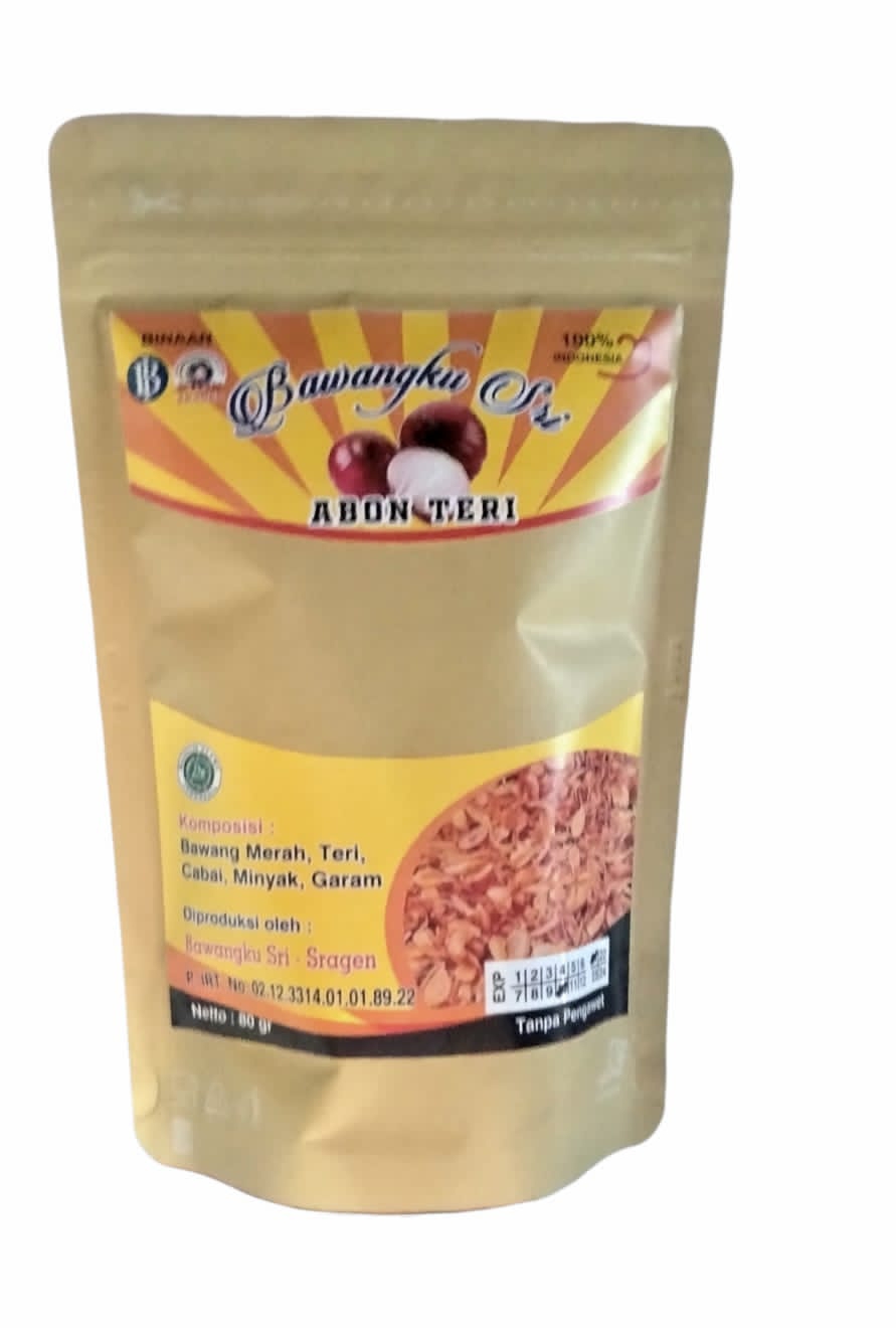 ABMI is located at Dukuhan RT 01/ RW 04, Nglorog, Sragen Regency. ABMI is a forum for shallot producers to encourage Sragen Shallot farming to be more environmentally friendly with cost efficiency and improve product quality. ABMI Sragen cooperates with its members to facilitate the production and processing of shallots from upstream to downstream. Since 2017, the BawangkuSri brand has been developed, which prioritizes the quality of pure fried onions without flour. Processed properly, the aroma of shallots is still strong with a sweet, savory taste for meals and snacks.