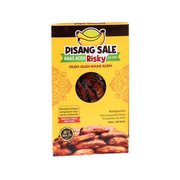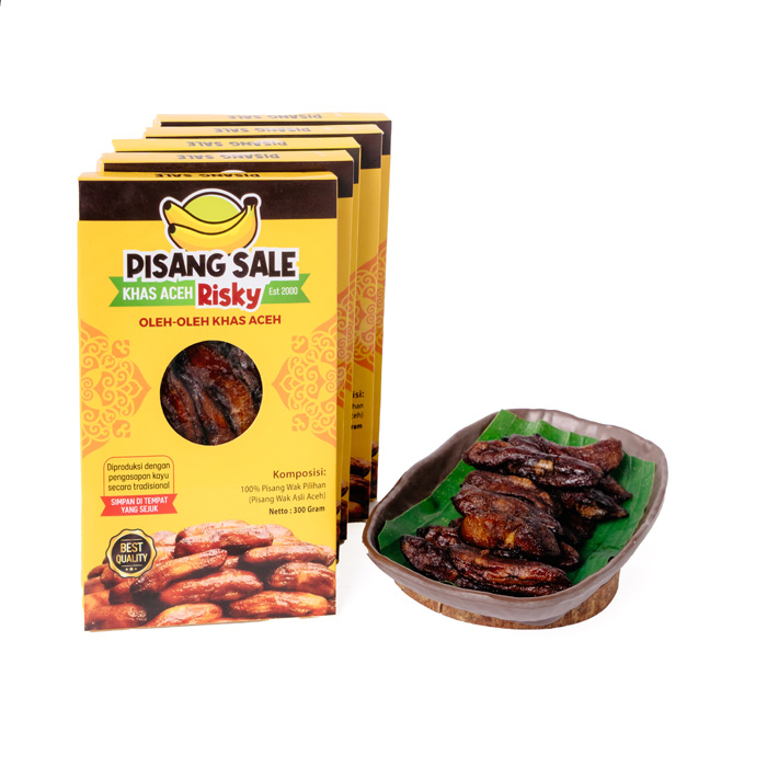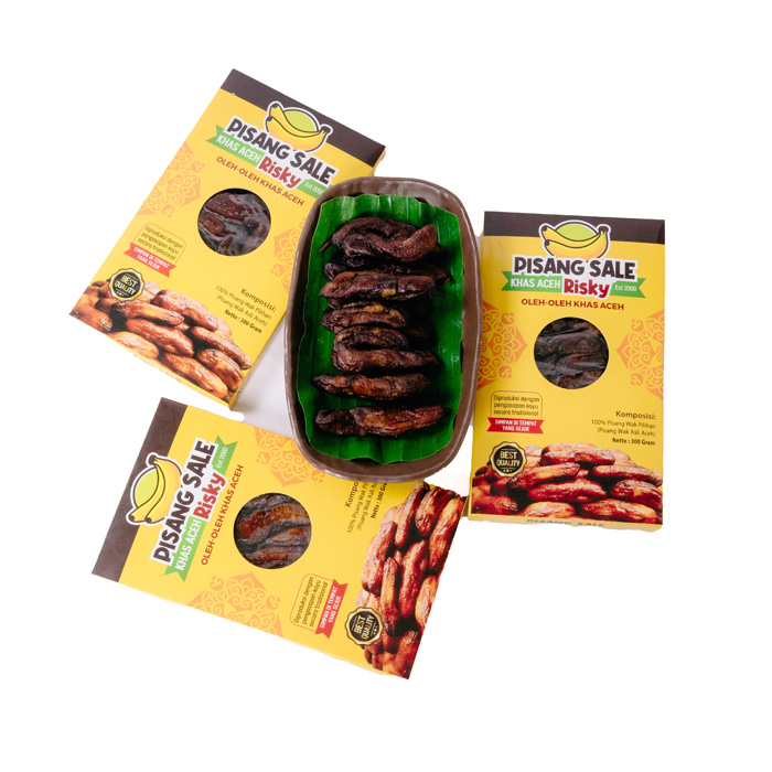 Pisang Sale Rizky — The Sweet Dark Delight from Aceh Born after the 2005 tsunami, Pisang Sale Rizky is a meaningful traditional souvenir from Aceh. Made from natural pisang wak bananas without preservatives or artificial sweeteners, and traditionally smoked over selected wood to create an unforgettable Acehnese aroma. Now, Pisang Sale Rizky offers product variations for everyone to enjoy: Sale Basah — soft, sweet, with a distinctive smoky aroma Sale Goreng — crispy on the outside, sweet on the inside Sale Rakit — neatly arranged, perfect as a memorable gift Every bite brings the sweet story and strength of Aceh.