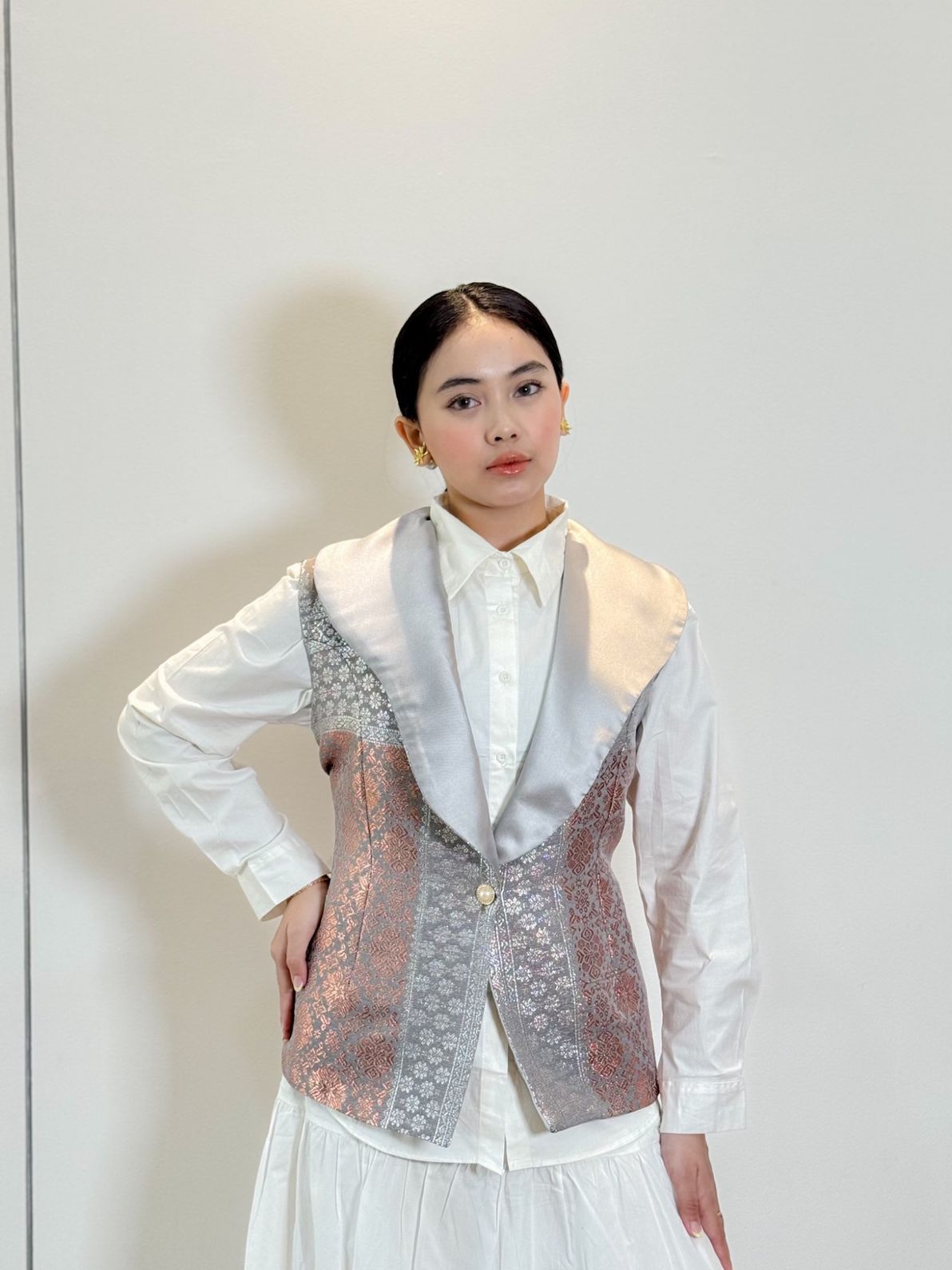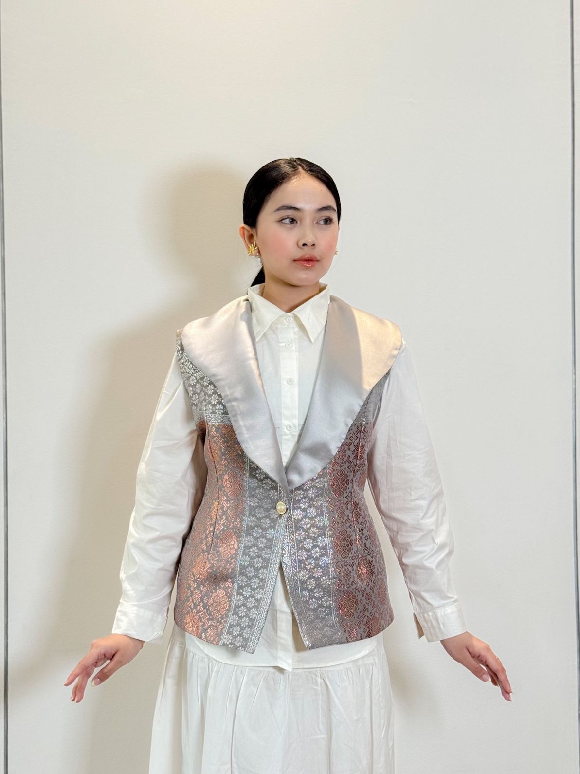 outer vest songket cape collar light grey
