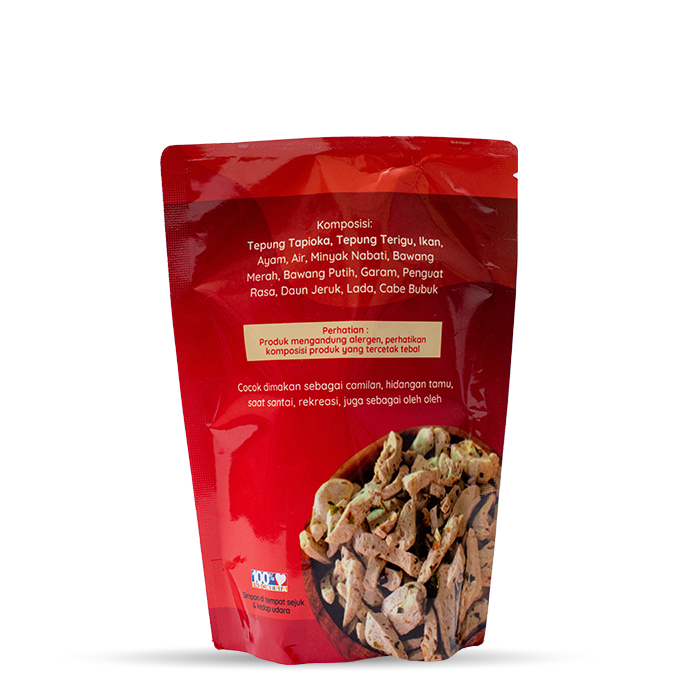 Material Content: Tepung tapioka, tepung terigu, ikan, ayam, air, minyak nabati, bawang merah, bawang putih, faram, lada, penguat rasa, daun jeruk