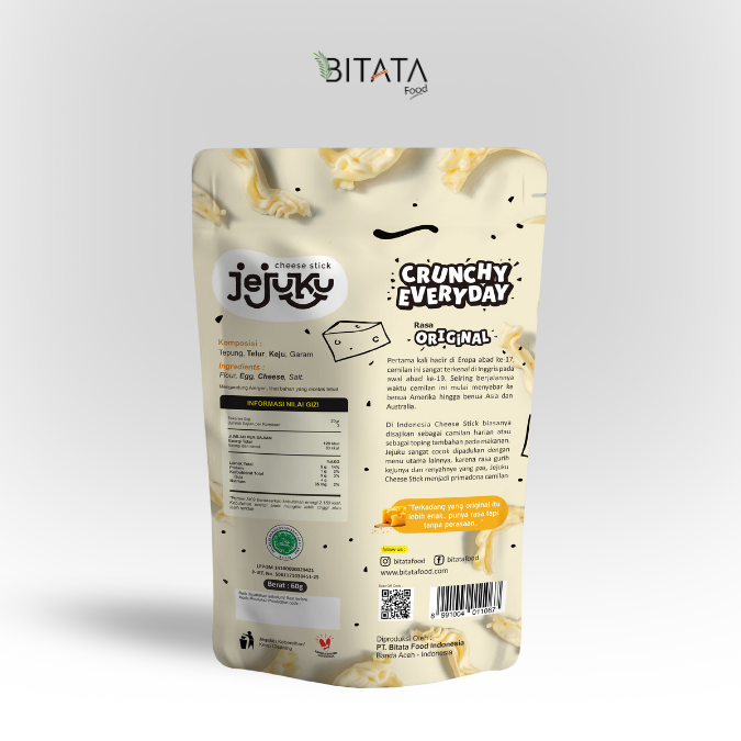 Jejuku from BitataFood is produced using a special recipe which is processed using selected quality ingredients, without harmful preservatives and flavourings, not greasy and not starchy. jejuku from BitataFood has been tested for a modern and halal production process from LPPOM MPU Aceh and the Banda Aceh City Health Office. Packaged in an attractive and exclusive package, making it easy to carry and eat anywhere, and safe for consumption by all groups.