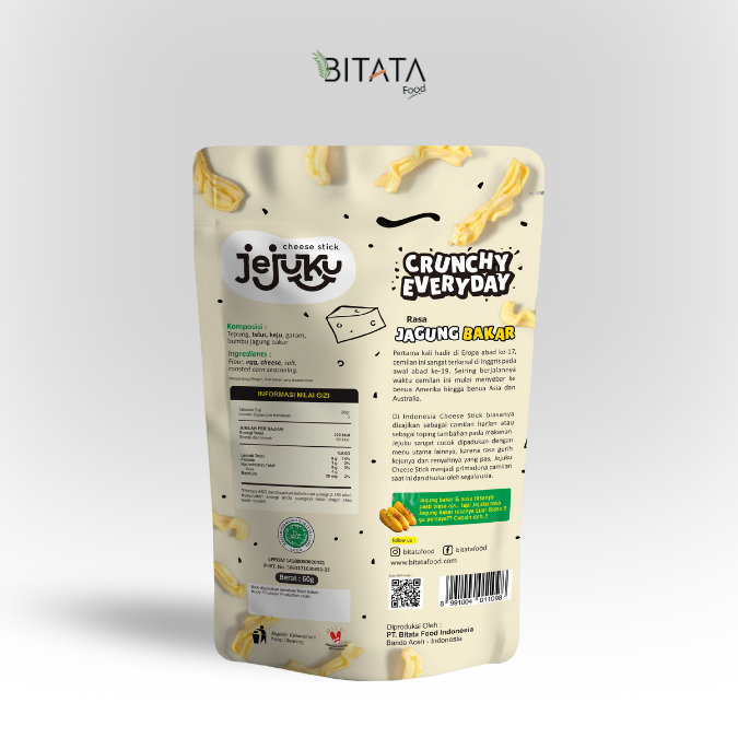 Jejuku from BitataFood is produced using a special recipe which is processed using selected quality ingredients, without harmful preservatives and flavourings, not greasy and not starchy. jejuku from BitataFood has been tested for a modern and halal production process from LPPOM MPU Aceh and the Banda Aceh City Health Office. Packaged in an attractive and exclusive package, making it easy to carry and eat anywhere, and safe for consumption by all groups.