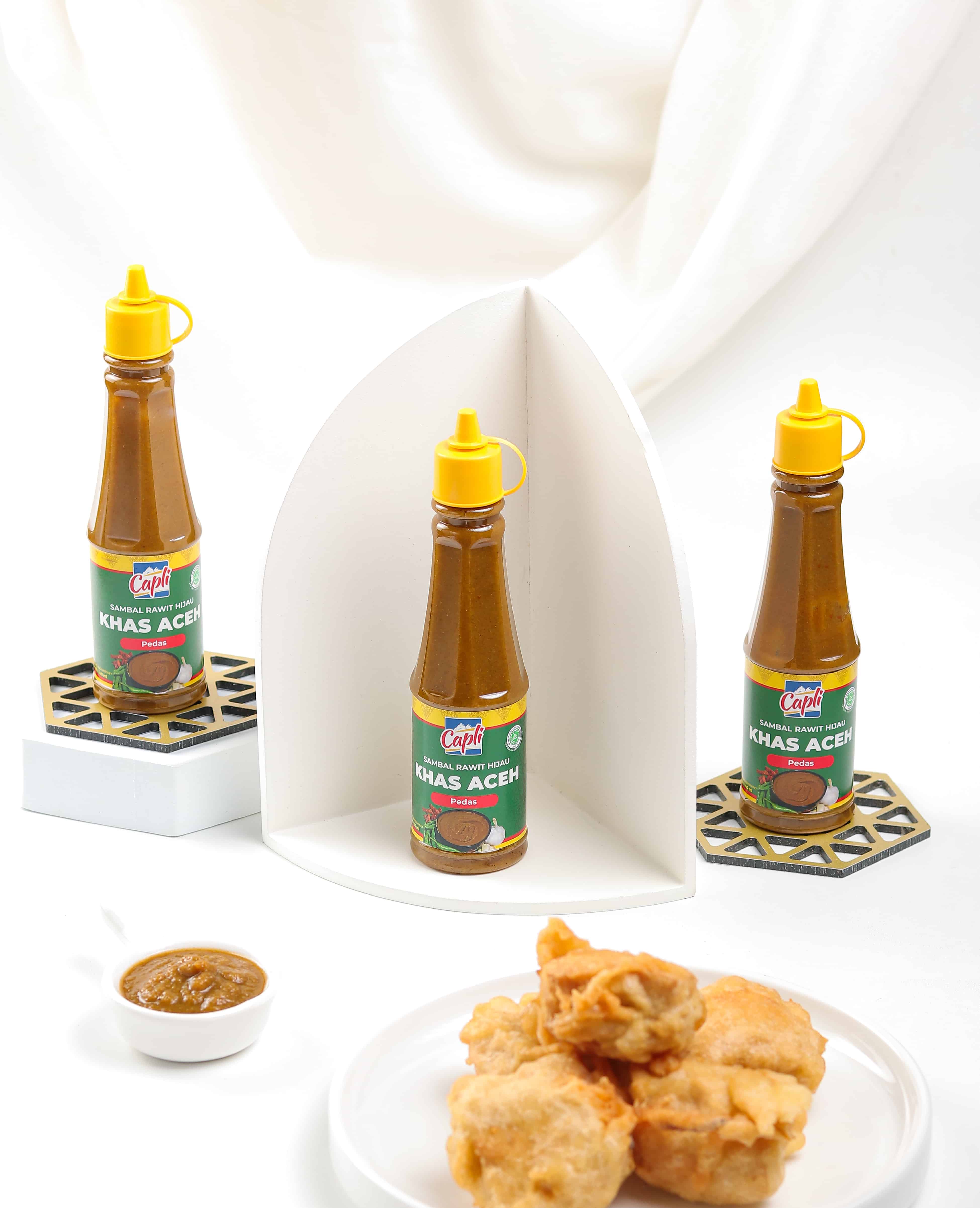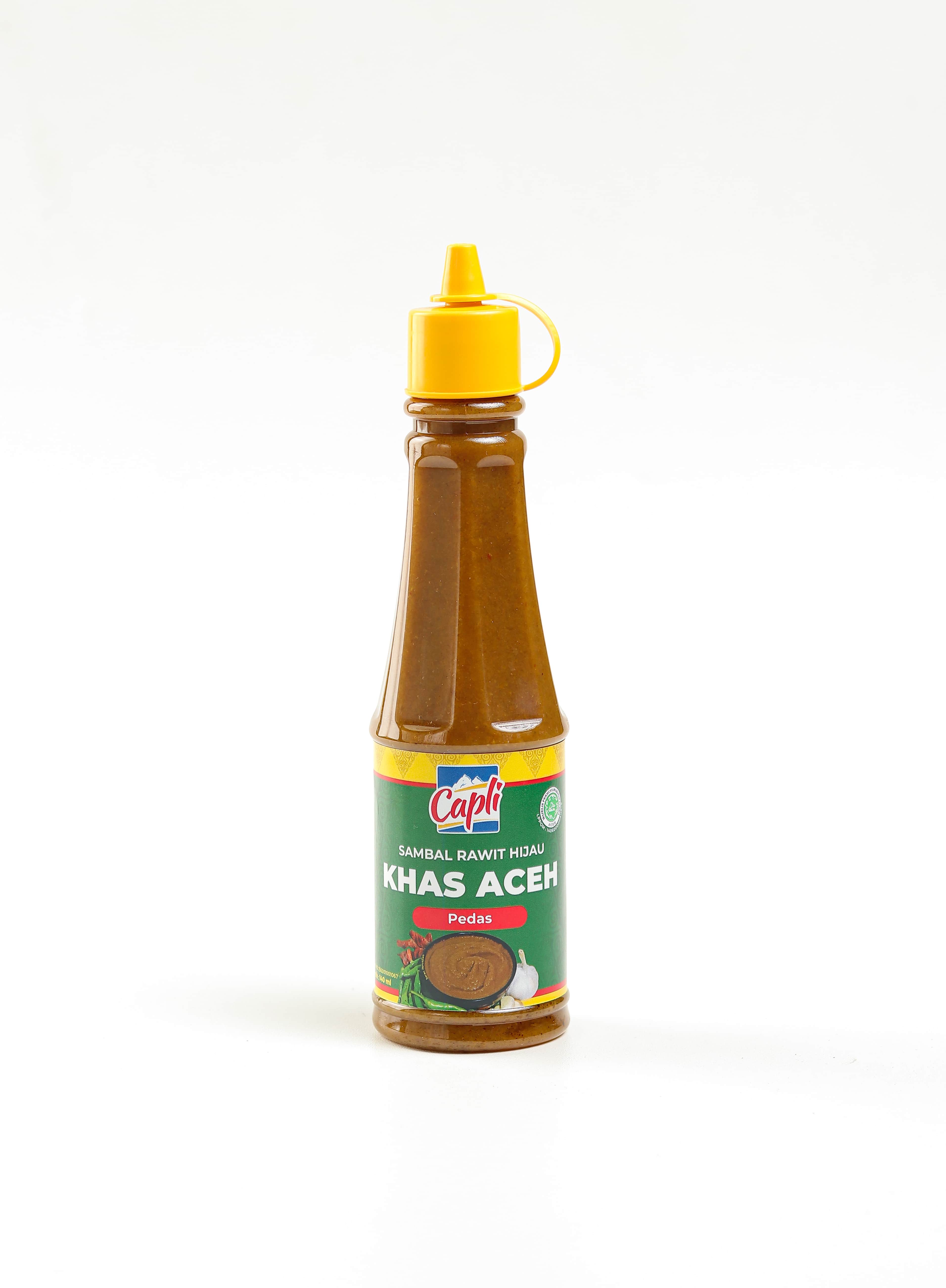 Capli Sambal Hijau is a chili sauce made from 60% green cayenne pepper from the Gayo highlands mixed with asam sunti (fermented star fruit wulu which functions as a thickener, acidifier, and preservative) to create a distinctive and unique spicy taste, without flavorings, sweeteners, and non-MSG can last up to 1 year. Already BPOM and Halal certified and MPU Aceh