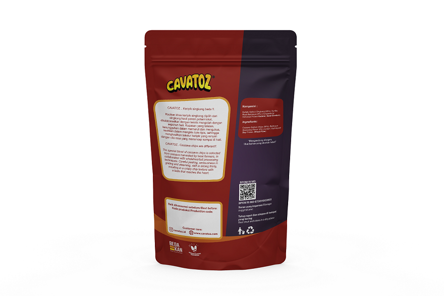 Cavatoz is crispy chips of cassava gethuk that produced at Sawahan RT 01 RW 02 Ngemplak, Boyolali, Central Java. It is made of premium qualified cassava, collaborated with perfect, processing technique, persevering in steaming and shredding, slight slicing so that in produces crispy texture and crunchy. Nowadays Cavatoz has many flavours. The CAVATOZ brand has been released since 2019 with 4 employees and has a simple but meaningful vision: Share Happiness!. Always committed to using local raw materials and local labor as a form of empowering the surrounding community. In addition, enjoying CAVATOZ means that customers participate in sharing happiness.