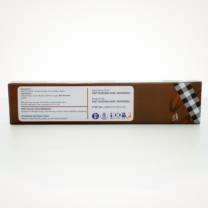 Material Content: Pasta Cokelat, Lemak cokelat, Gula, Vanilla, Cocoa Mess, Cocoa Butter, Milk Powder, Sugar, Vanila
