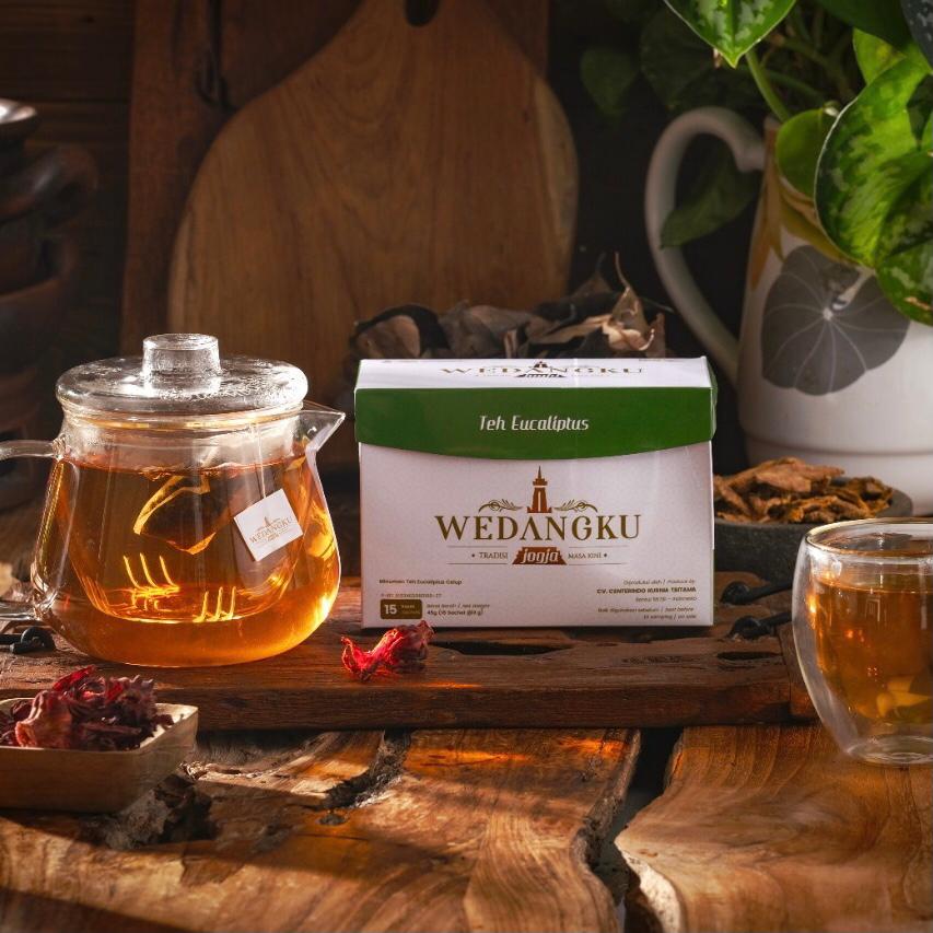 WEDANGKU Eucaliptus tea are made of black tea, eucalyptus leaves and rosella flowers which bring a new taste for tea connoisseur. The combination of black tea and the unique taste of Equaliptus leaves makes of Tea Equaliptus WEDANGKU has a cooling extraordinary taste.