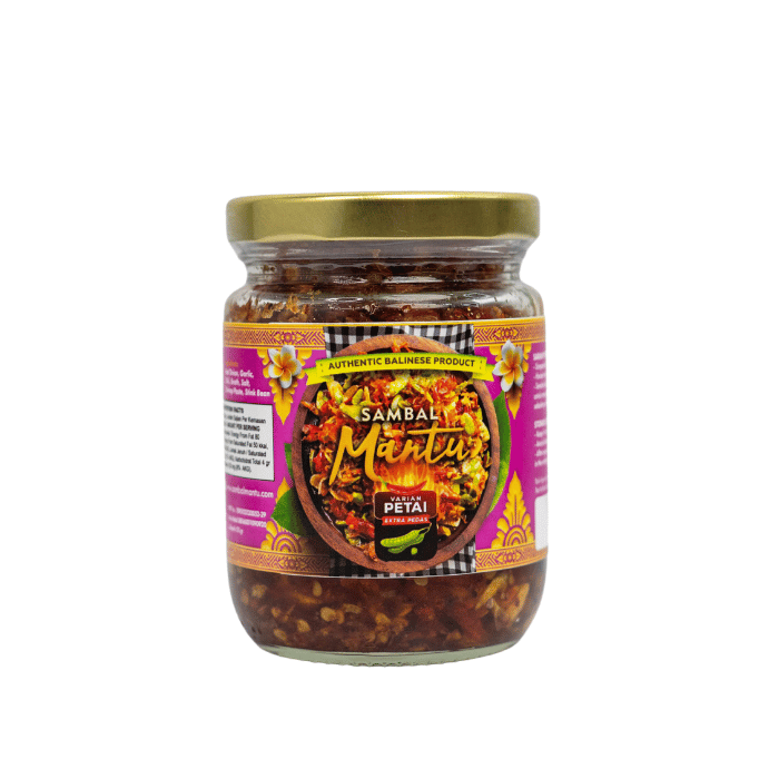 Variant Sambal Mantu Petai Judes botol has an extra spicy level. Sambal with crispy Petai filling inside. Sambal Mantu is a typical Balinese Mbe or onion chili sauce that is SAFFY, CRISPY, WITHOUT MSG
