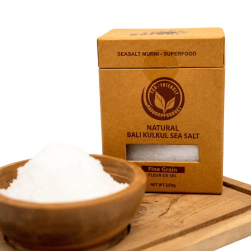 Natural Bali Kulkul Sea Salt is refined sea salt created by a result of the sea , wind and heat off coast of Bali. It is slowly drying into Green Glass House to keep the mineral Content inside. Crunch in the Mouth. Content of calcium, magnesium and potassium,