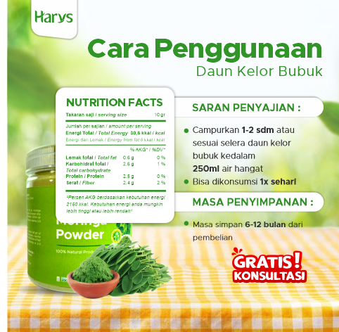 HARVS Premium Moringa Leaf Powder is made from 100% selected moringa leaves without any mixture, quality, and rich in nutrients.