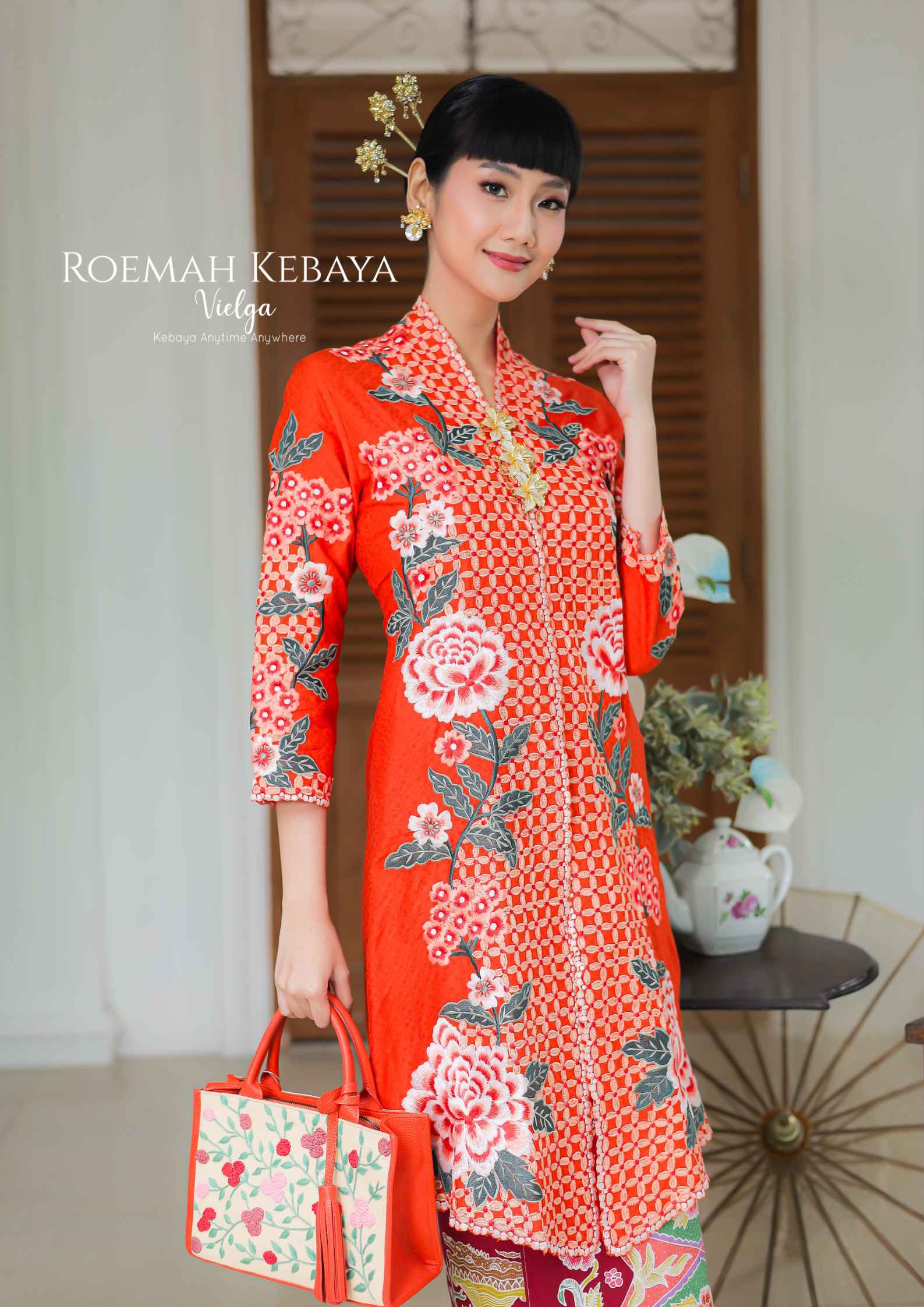Kebaya Panjang Motif Kawung Peony Orange by Roemah Kebaya Vielga