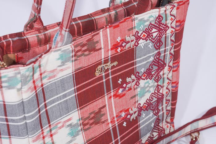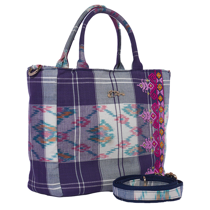 Tote bag woven tajung palembang combination of embroidery with velvet suede inner material and has been equipped with premium gold zips and long adjustable straps.