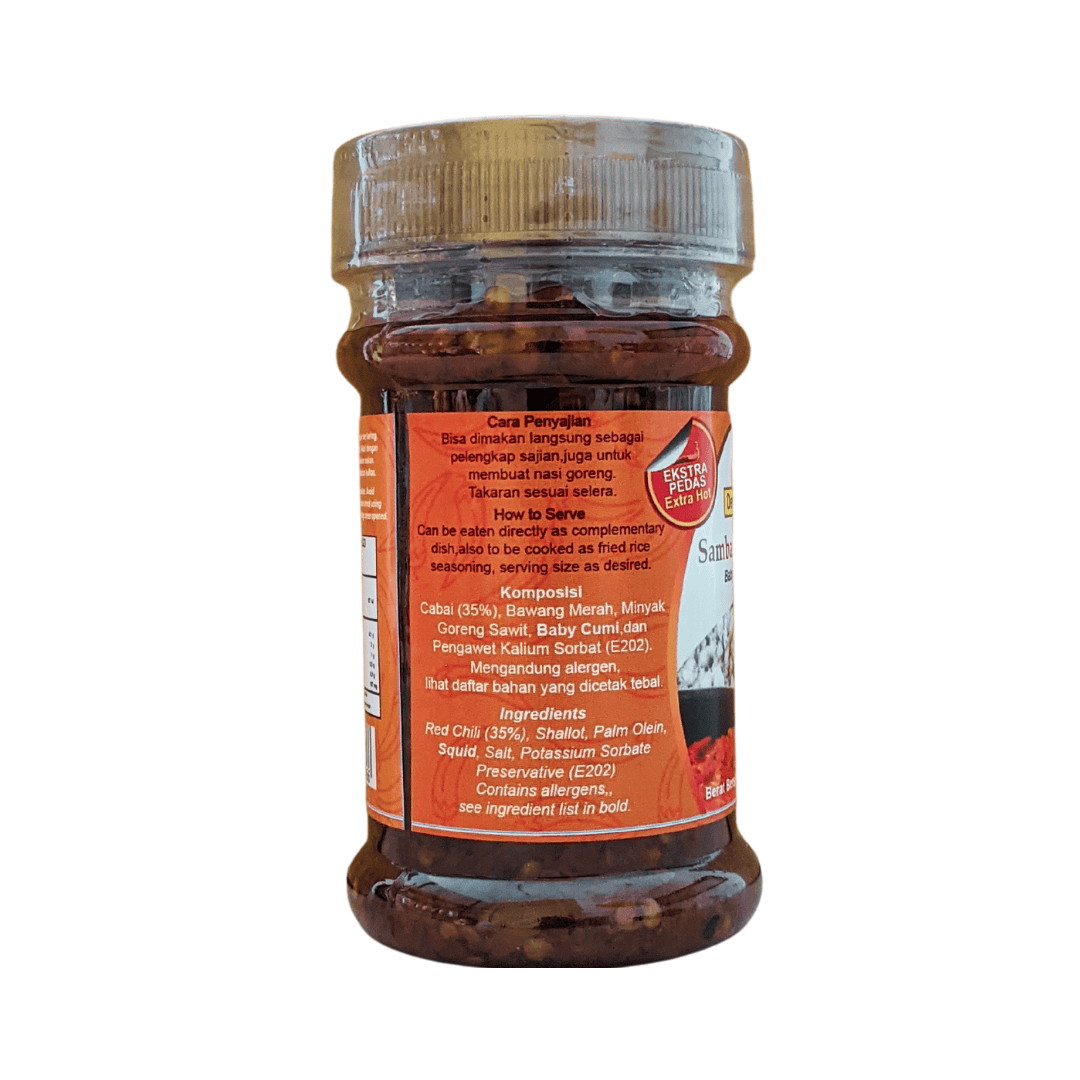 Material Content: Cabai, bawang merah, bawang putih, garam, minyak goreng sayur, baby cumi