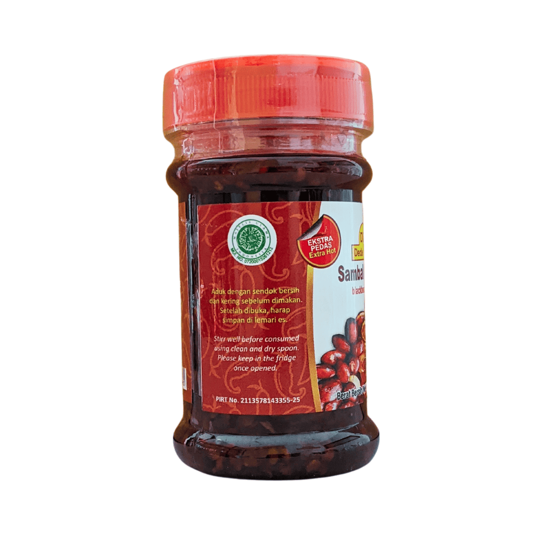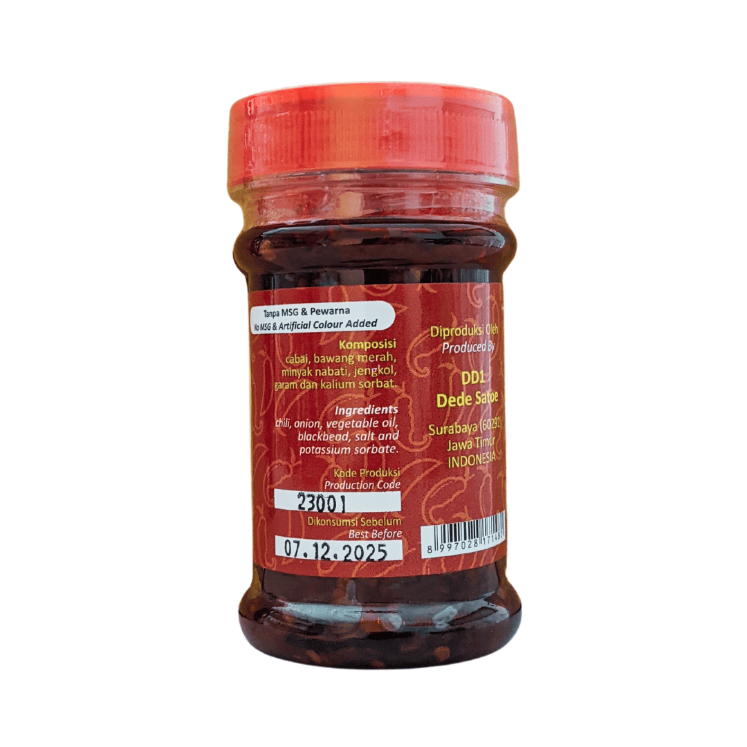 Established in November 2011. Processed using selected and high quality raw materials in Surabaya and around, in HACCP, GMP, USFDA, Halal, and other certified processing standards. With the distinctive texture of home-made sambal that is flavour enhancers free, it is served for spicy lovers anywhere and anytime. By consuming our products, it means contributing to the economic welfare of the residents around Dede Satoe. Thank you!
