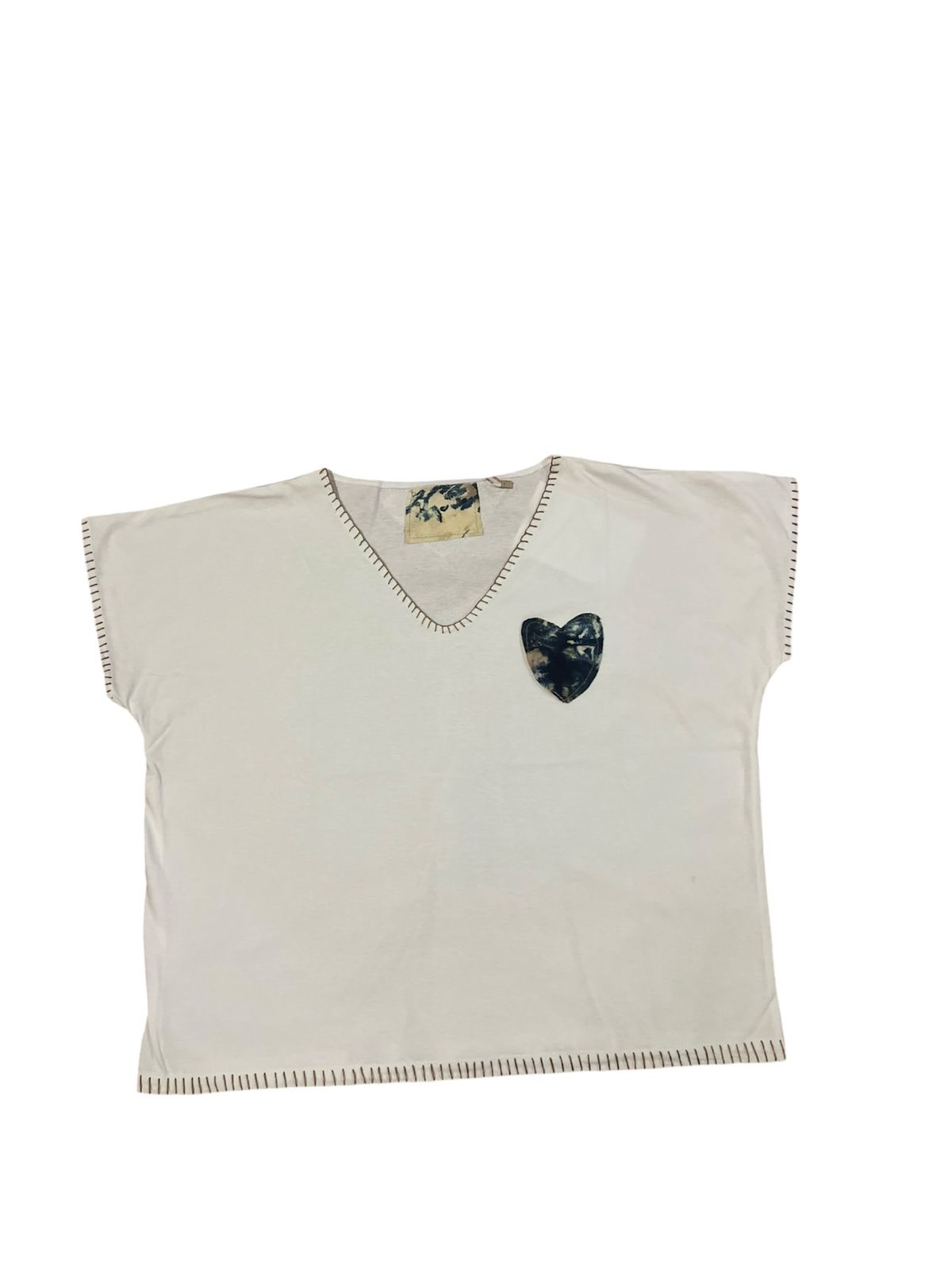 Material Type: Kaos katun bambu dengan aplikasi perca kain pewarna alam