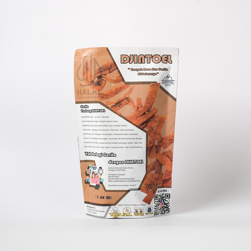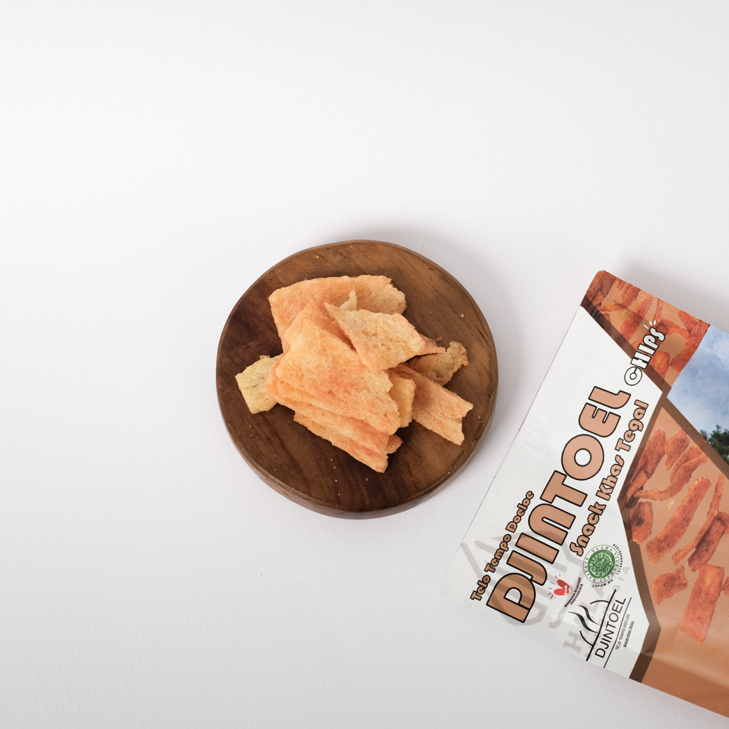 Djintoel is a typical Tegal snack made from cassava. Cassava is usually cut into thin pieces and fried until crispy. DJintoel is often served as a snack or light meal which is popular in the Tegal area, Central Java, Indonesia. Djintoel with the softness and suppleness of cassava which is processed skillfully, every piece of Djintoel promises a crunchy and alluring texture, presenting a sensation that spoils your tongue. Combined with a delicious savory taste, this snack meets expectations for high quality and taste satisfaction. Djintoel is an interesting blend of traditional delicacy and modern beauty of taste.