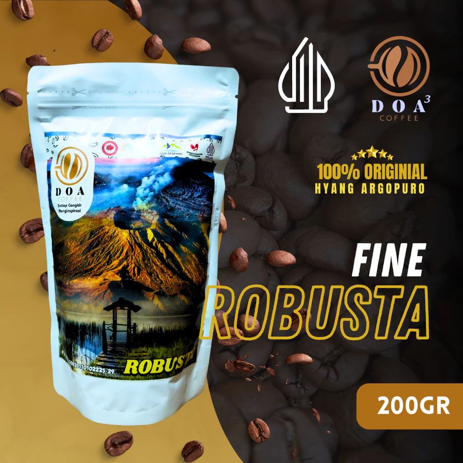 DOA Coffee Hyang Argopuro is a premium coffee producer located on the slopes of Mount Argopuro, East Java, Indonesia. Every coffee bean is handpicked with care and processed using high-quality fermentation methods, representing a commitment to authentic flavors and top-notch quality. Under the banner of “100% Original Hyang Argopuro,” DOA Coffee offers a wide selection of Arabica and Robusta variants — including Arabica Honey, Lactic, Natural, Fullwash, Bluemountain, Wine, and the rare Excelsa.