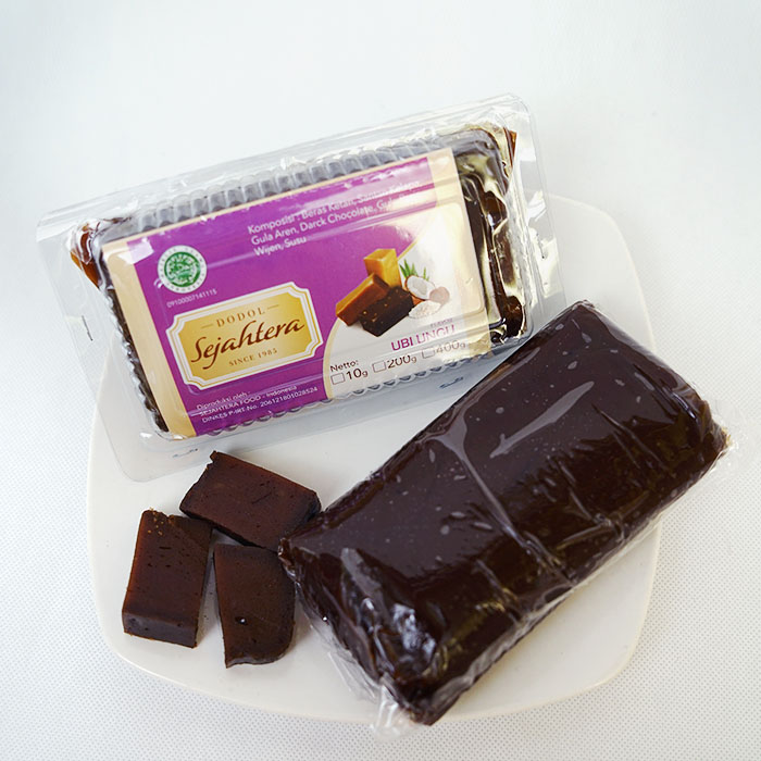 Dodol Ubi Ungu terbuat dari Ubi Ungu asli yang direbus sampai matang, lalu dimasak kembali bersama santan dan gula putih sekitar 4-5 jam hingga mendapatkan hasil dodol yang legit, lalu dikemas dengan berbagai jenis kemasan yang sudah tersedia di Outlet Dodol Sejahtera