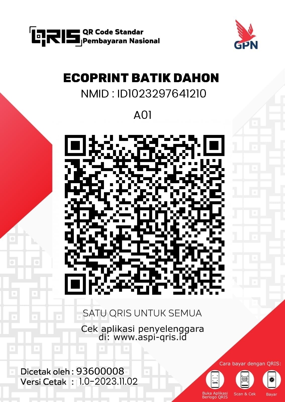 Ecoprint Batik Dahon was established in Cijulang, Pangandaran in 2018 through the initiative of Asep Kartiwa and Elin Herlina.It utilizes natural ecoprint techniques—creating patterns using leaves, flowers, and natural dyes extracted from plants such as nipah fruit (dahon), sappan wood, mahogany bark, and more. Their products include fabrics, bags, tote bags, pashminas, shoes, hats, and face masks. The results are eco-friendly, exclusive due to each piece's unique pattern, and fully handmade without machines. Their products have reached major markets across Indonesia and have been exported to the Netherlands, Thailand, Korea, and Hong Kong.