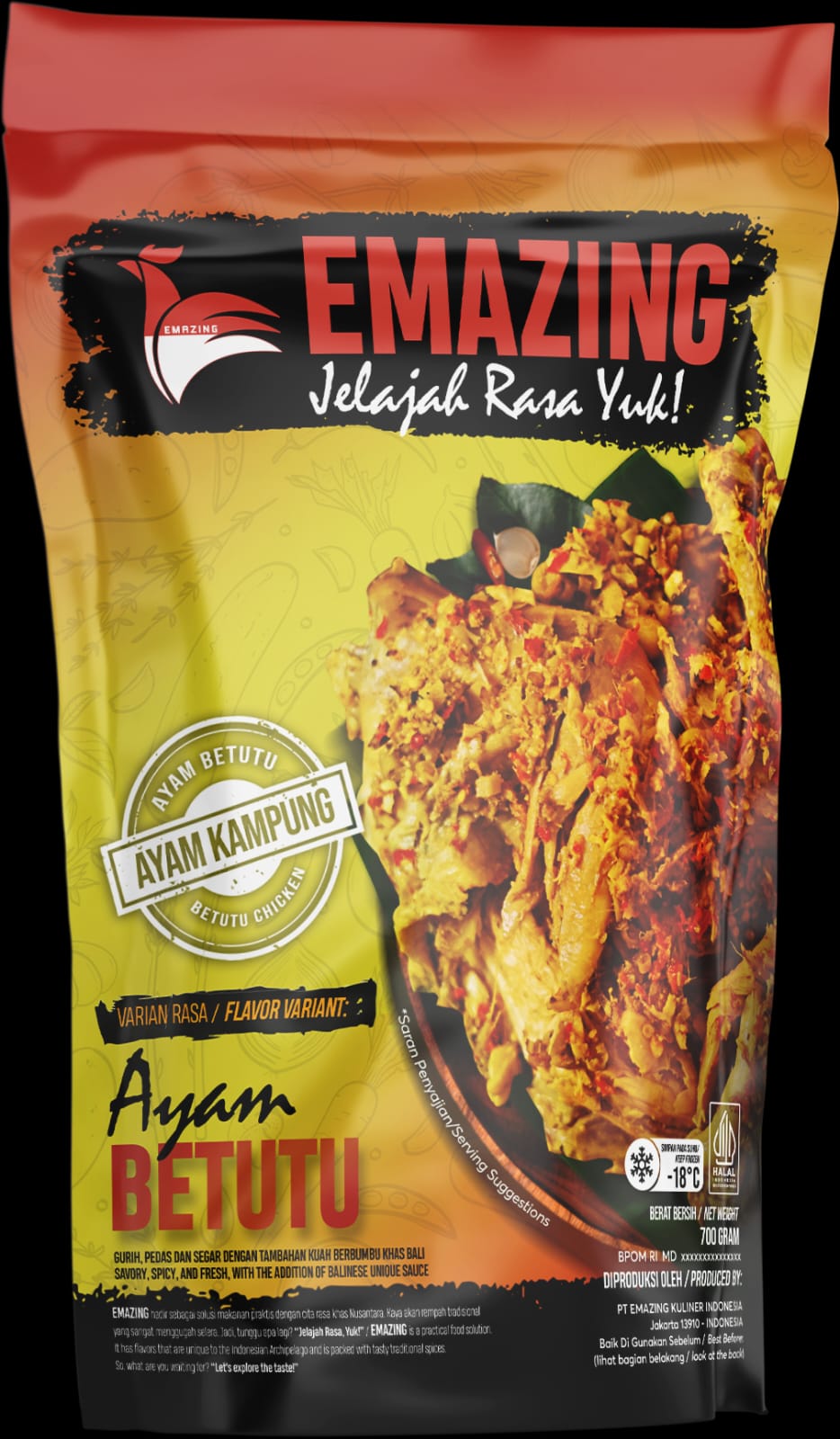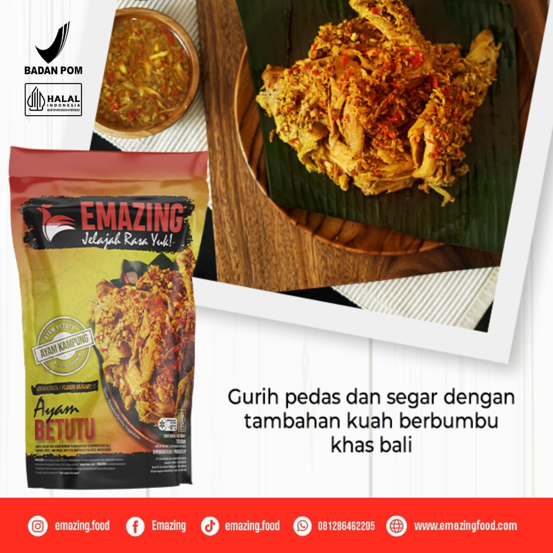 EMAZING processes Betutu Chicken dish by serving delicious gravy packed instantly and practically to ease people to enjoy Betutu Chicken without taking time.